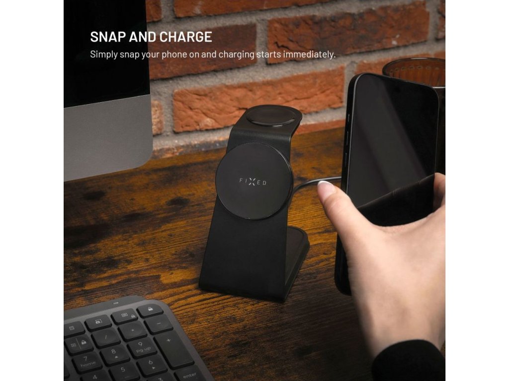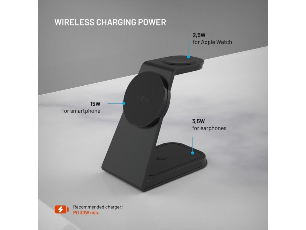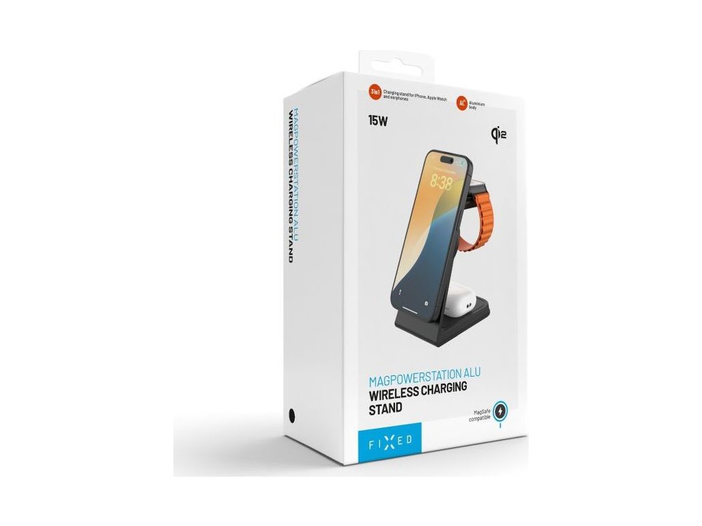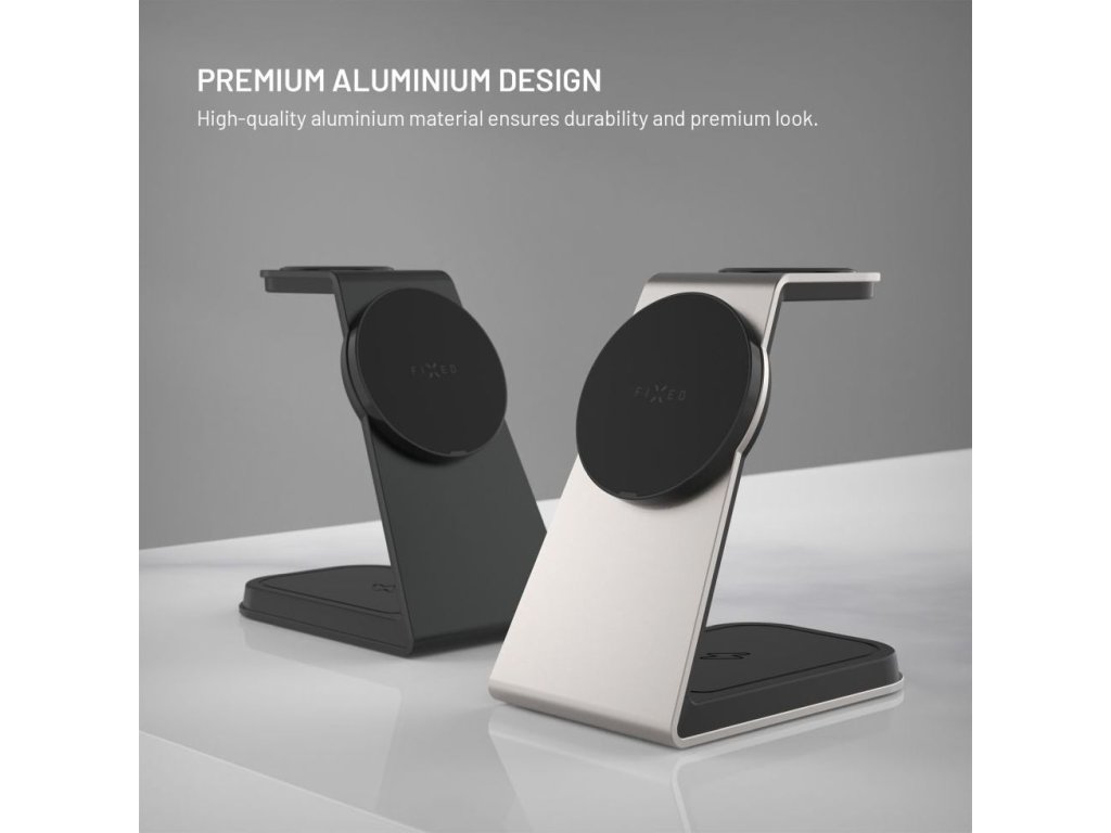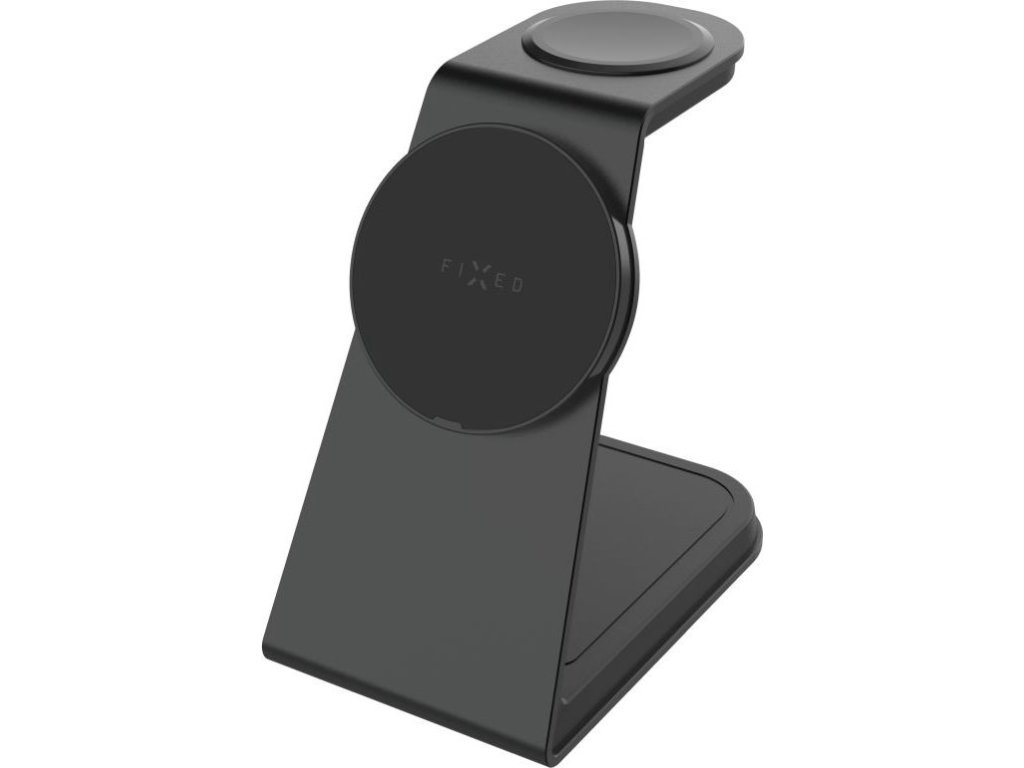 Stojanček s bezdrôtovým nabíjaním 3v1 FIXED MagPowerstation Alu 2 s podporou MagSafe, 15W+3.5W+2.5W, Qi2, čierny