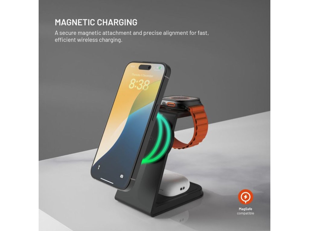 - bezdrôtový nabíjací stojan 3v1 s podporou MagSafe