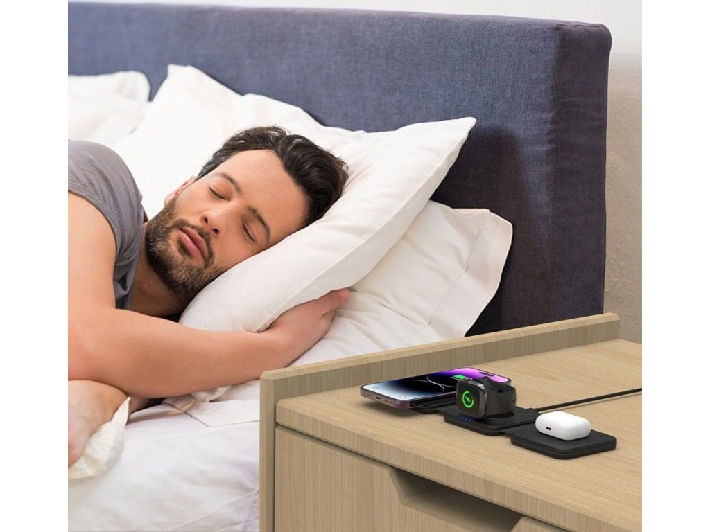 Tech-Protect QI15W-A24 je viacúčelová nabíjačka kompatibilná so zariadeniami Apple, ktoré podporujú funkciu nabíjania Magsafe. Nechýba ani možnosť bezdrôtového nabíjania Apple Watch.