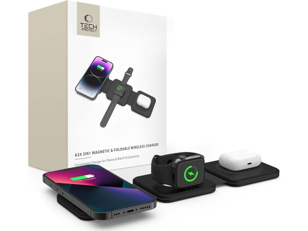 TECH-PROTECT QI15W-A24 3IN1 MAGNETIC MAGSAFE WIRELESS CHARGER BLACK
