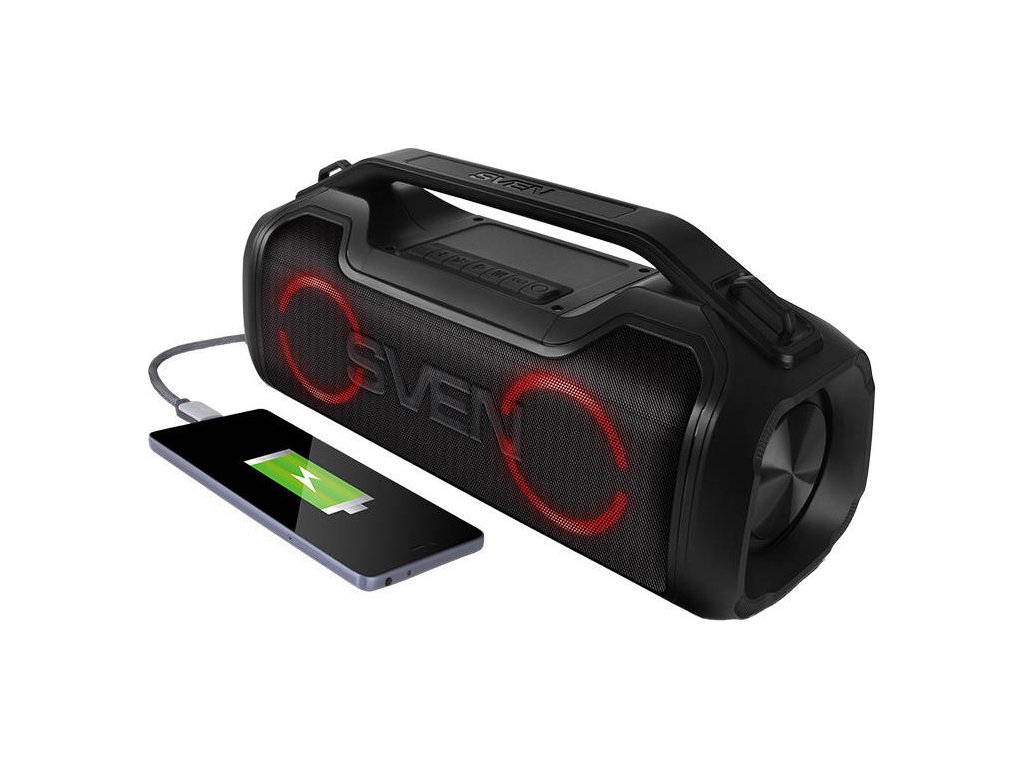 SVEN PS-390 má dve batérie s kapacitou 3600 mAh, každá poskytuje hodiny zábavy, ale to nie je ich jediná výhoda – reproduktor môžete použiť aj ako power banku a nabíjať tak napríklad svoj telefón!