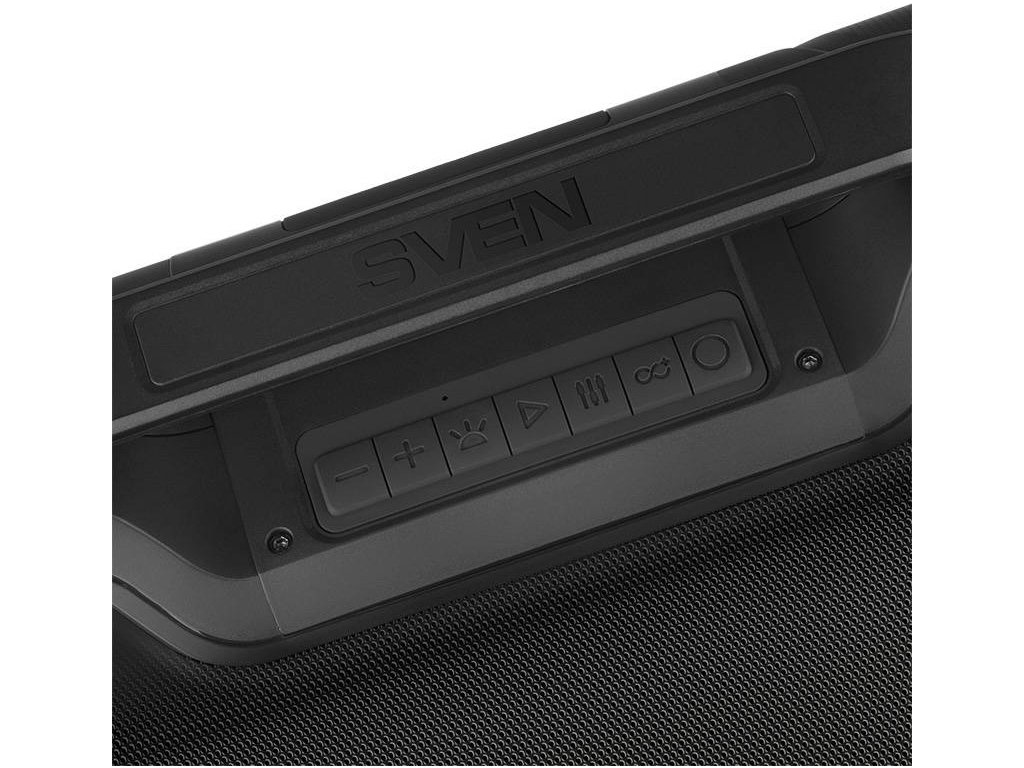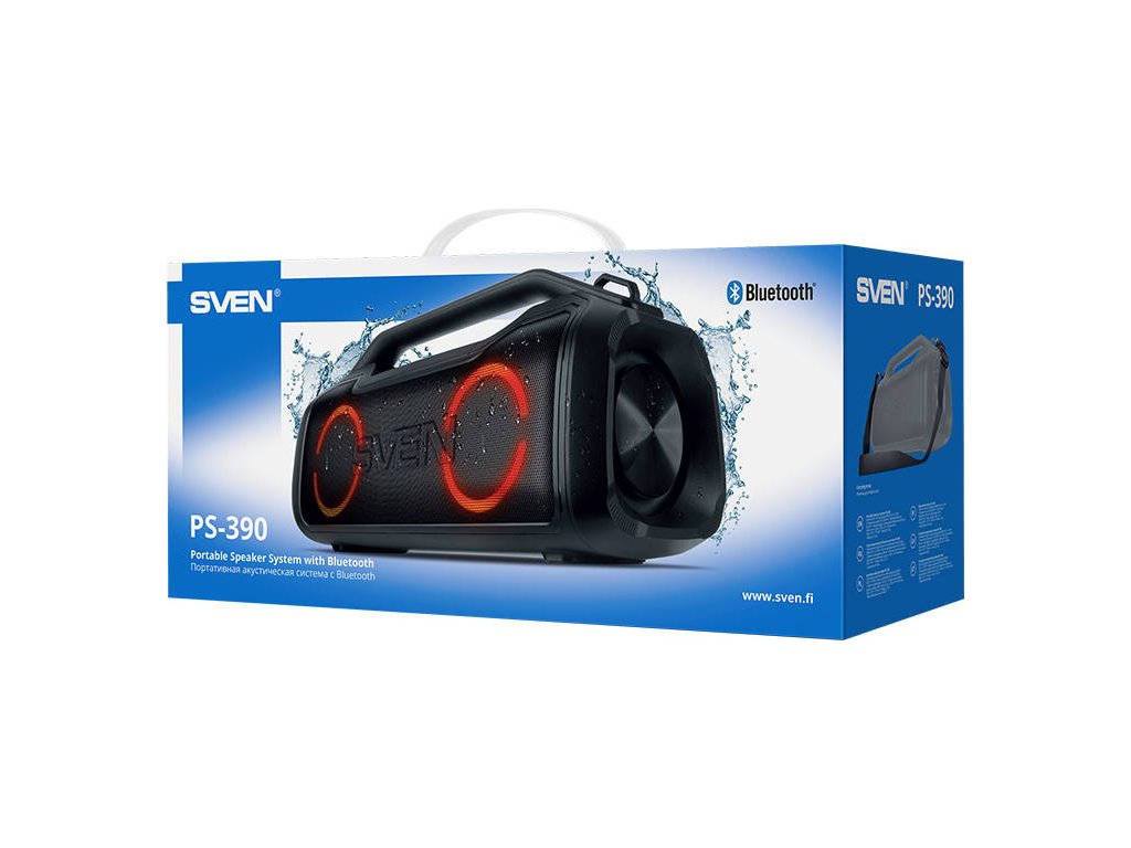 Nielen vynikajúca kvalita zvuku, ale aj výnimočná mobilita sú silné stránky reproduktora SVEN PS-390. Rukoväť zabudovaná do konštrukcie reproduktora uľahčuje prenášanie v rukách a priložený popruh znamená, že si ho môžete pohodlne prehodiť cez rameno.