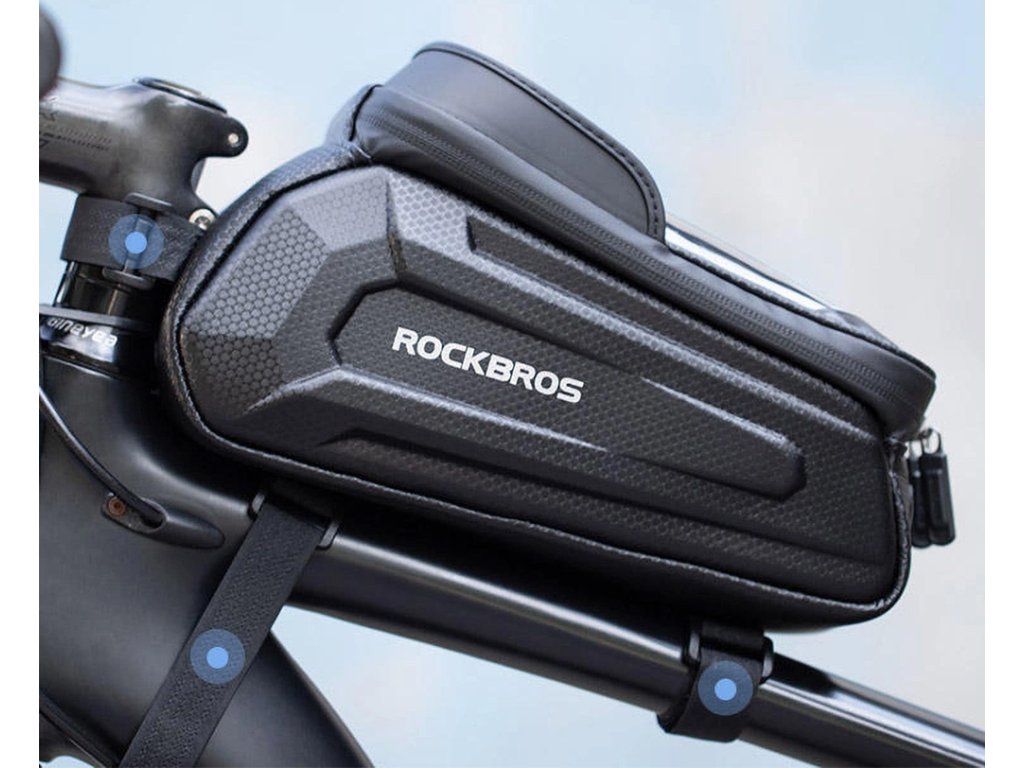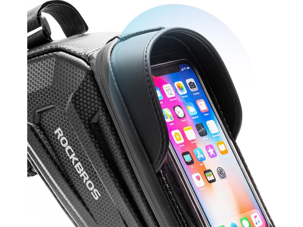 Taška na bicykel Rockbros 029-1BK na rám s krytom na telefón - čierna Cyklistická brašňa Rockbros 029-1BK je perfektným doplnkom pre každého cyklistu.