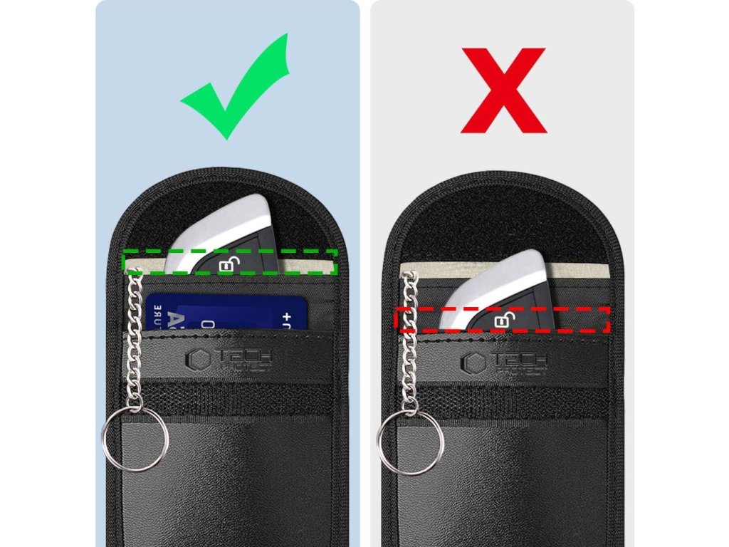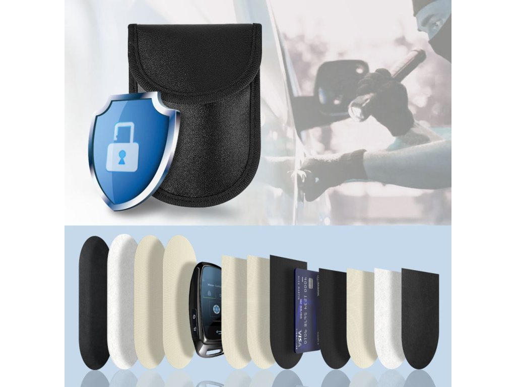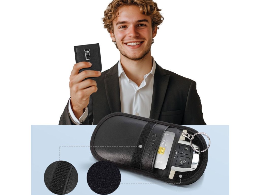 Vnútri sa nachádza dvojitá ochranná vrstva z RF materiálu, ktorá účinne blokuje RFID, EMF, Bluetooth, Wi-Fi, GPS a ďalšie rádiové vlny, čím zaisťuje plnú ochranu kľúčov pred pokusmi o ich kopírovanie alebo čítanie na diaľku. Vďaka tomu si aj v blízkosti potenciálnych nebezpečenstiev môžete byť istí, že vaše vozidlo zostane v bezpečí.