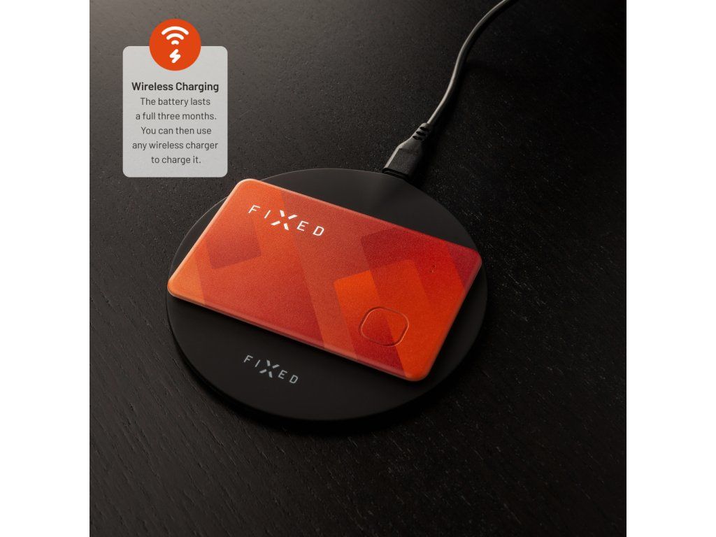 Smart tracker FIXED Tag Card s podporou Find My, bezdrôtové nabíjanie, oranžový