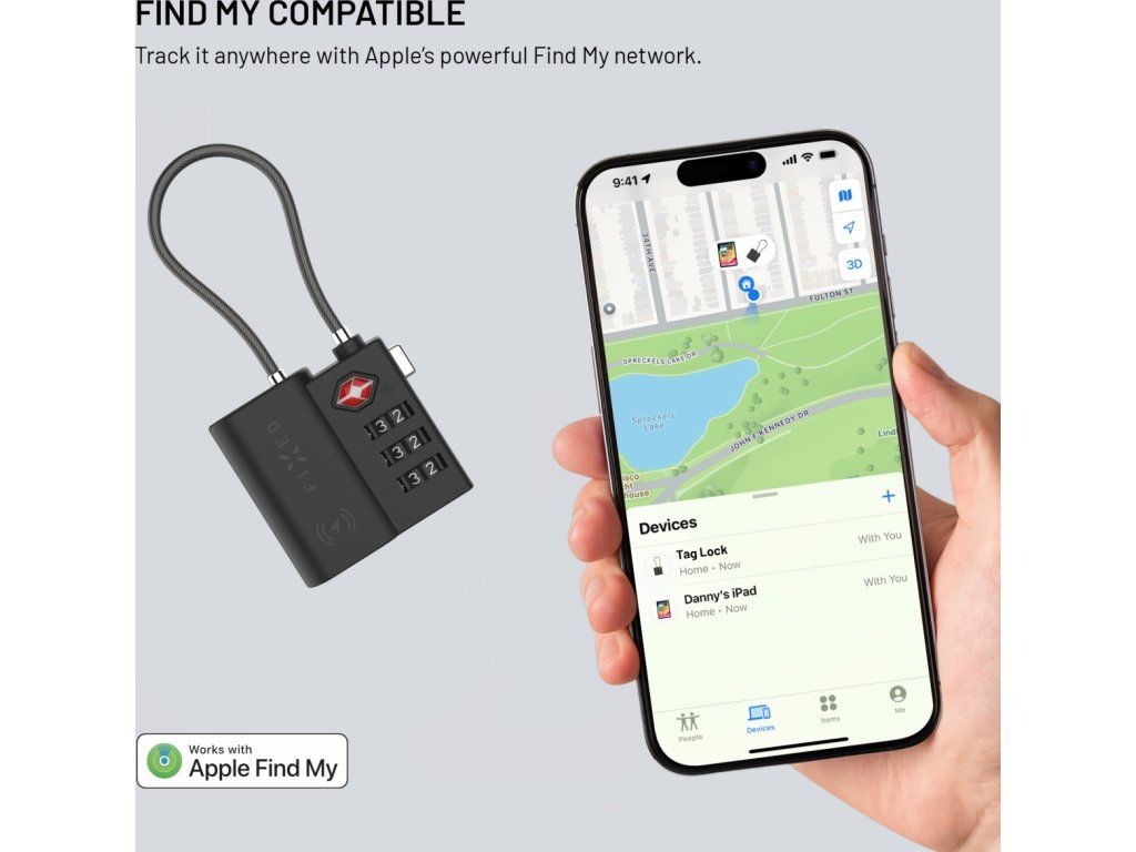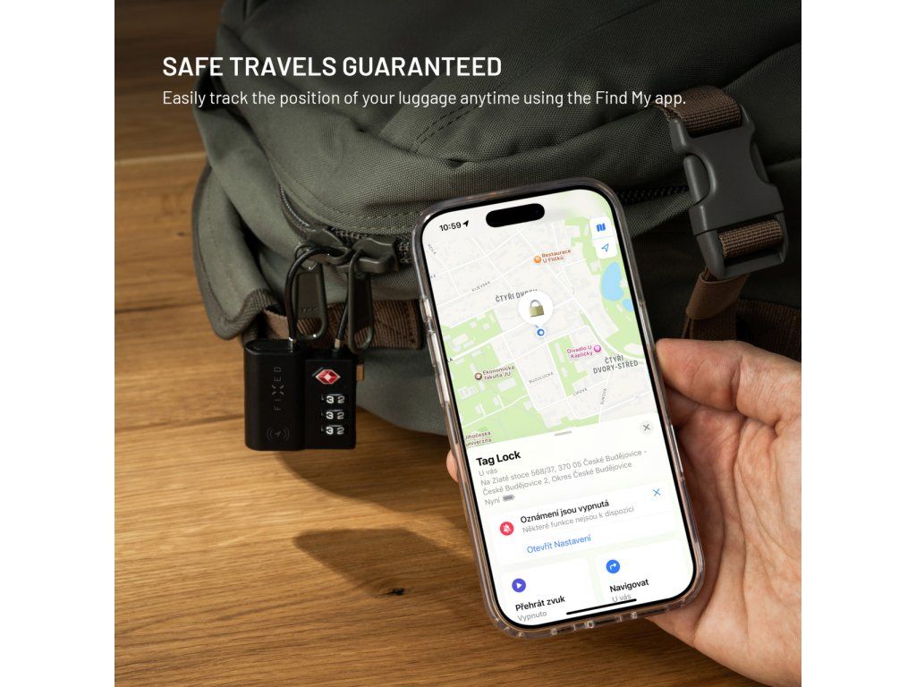 Smart tracker FIXED Tag Lock s podporou Find My a TSA, čierny