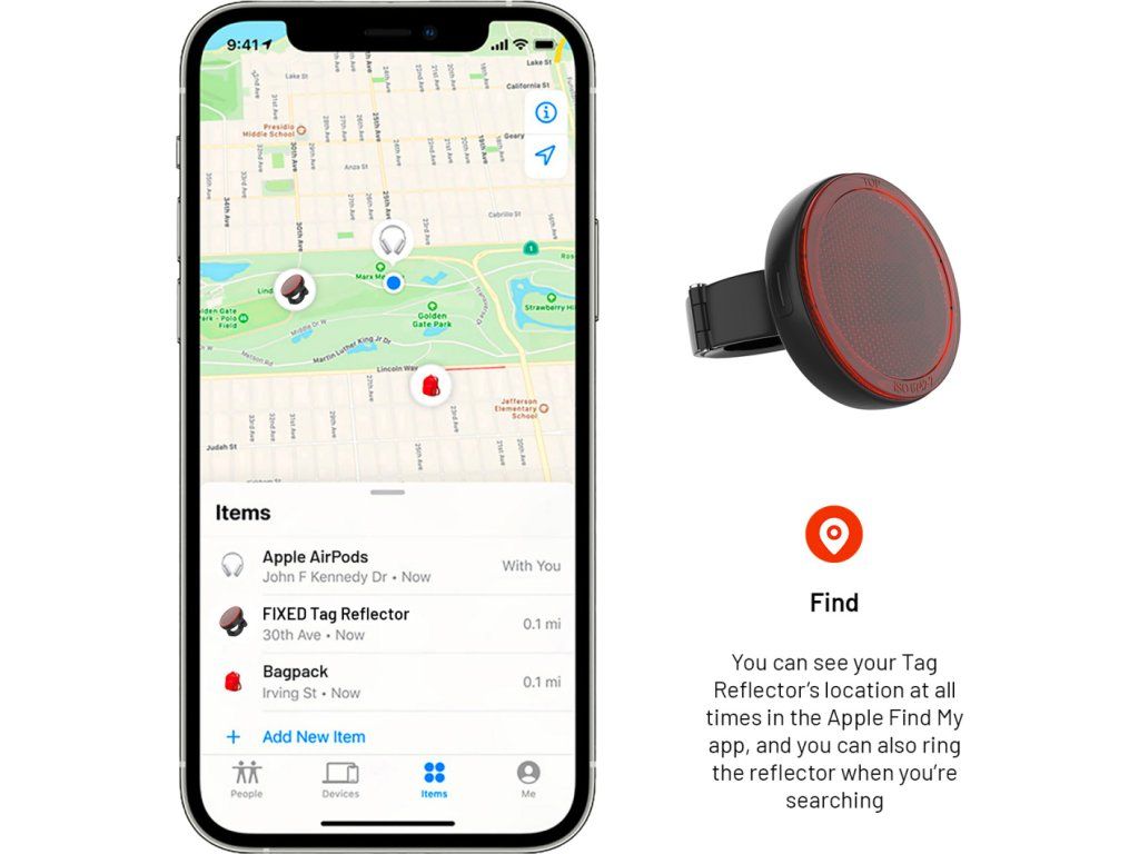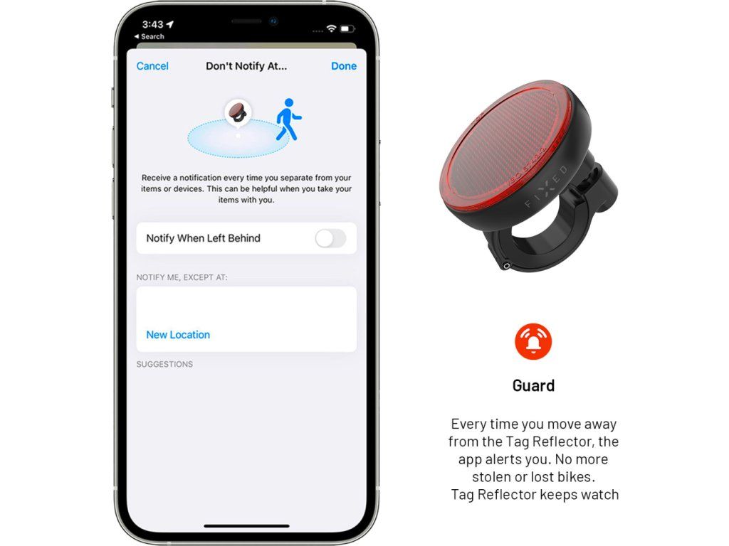 Máte obavu nechávať svoje obľúbené kolo bez dozoru? Tag Reflector ho postráži za vás. Pomocou aplikácie Nájsť na vašom iPhone, iPade alebo Apple Watch vás okamžite upozorní, keď sa bicykel dostane mimo vášho dosahu.