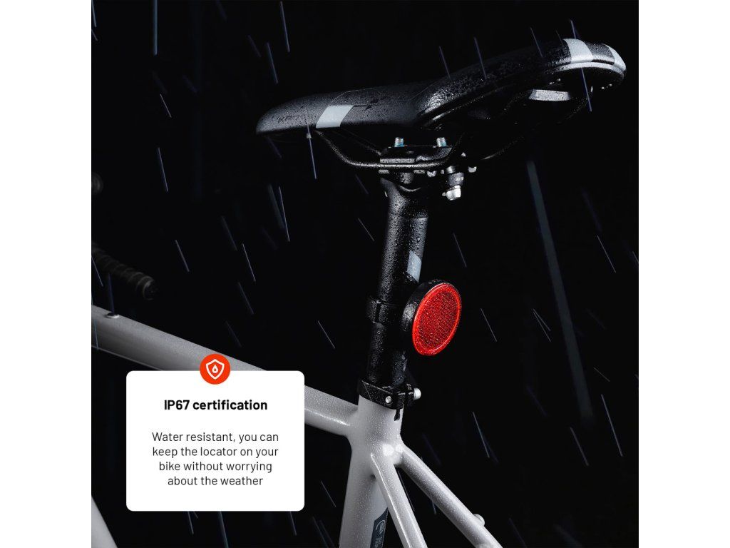 Lokátor FIXED Tag Reflector s podporou systému iOS je skrytý v podobe zadnej odrazky a predstavuje tak dômyselné riešenie, ako ochrániť svoj bicykel. Odrazka sa ľahko spáruje s aplikáciou Nájsť vo vašom iPhone či inom iOS zariadení a okamžite môžete kdekoľvek a kedykoľvek sledovať polohu vášho bicykla. Navyše je odrazka vybavená zvukovou signalizáciou, ktorá umožňuje rýchlejšiu lokalizáciu v prípade straty. Vďaka štandardu IP67, ktorý zaručuje odolnosť proti vniknutiu prachu a vody sa nemusíte obávať vyjsť na bicykli za každého počasia. Vzhľad pripomínajúci bežnú červenú odrazku nepriťahuje pozornosť zlodejov a zároveň plní svoju primárnu funkciu bezpečnostného prvku. Odrazka sa ľahko inštaluje pod sedlo kolesa na tzv. sedlovku, súčasťou je silikónová podložka, ktorá chráni bicykel pred poškriabaním. Užívajte si s FIXED Tag Reflector bezstarostnú jazdu a majte svoj bicykel neustále pod kontrolou v sieti Apple ekosystému.