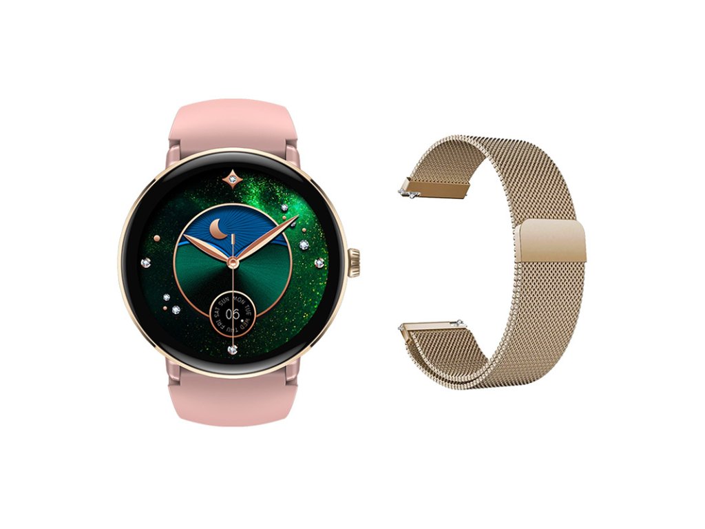 Hodinky Zeblaze Lily 2 sa vyznačujú kompaktným obalom o dĺžke 38,8 milimetrov a hmotnosťou iba 21,6 gramov (bez remienka). Vďaka svojej štíhlosti (hrúbka 10,5 mm) sú na zápästí takmer nepostrehnuteľné, zatiaľ čo elegantná kovová povrchová úprava im dodáva punc noblesy. Hodinky sa dodávajú s dvoma remienkami - silikónovým a oceľovým vo farbe hodiniek - takže ich vzhľad môžete prispôsobiť konkrétnej príležitosti.