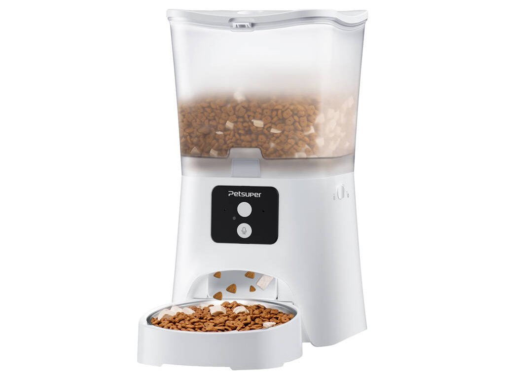 Šikovný dávkovač krmiva Petsuper PF02-2 s objemom 3 l uľahčuje každodennú starostlivosť o domáce zvieratá. Pomocou mobilnej aplikácie môžete na diaľku ovládať porcie krmiva, nastavovať rozvrhy kŕmenia a sledovať stav zariadenia. Petsuper PF02-2 ponúka aj funkciu nahrávania hlasových správ, ktorá ďalej uľahčuje interakciu s vašim maznáčikom.