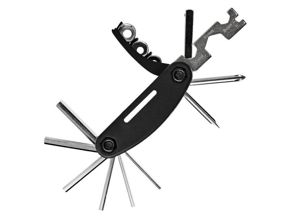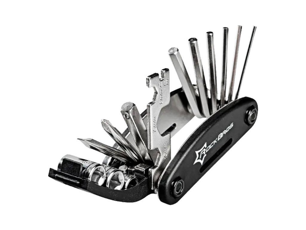 Zakúpením multifunkčného vreckového noža Rockbros získate oveľa viac nástrojov. Tento praktický multitool ponúka 6 imbusových kľúčov (2 mm, 2,5 mm, 3 mm, 4 mm, 5 mm, 6 mm), plochý skrutkovač, krížový skrutkovač, sadu vreckových kľúčov (8 mm, 10 mm, 15 mm), nadstavec a nástrčné hlavice (8 mm, 9 mm, 10 mm). To vám umožní ľahko utiahnuť uvoľnenú skrutku alebo vykonať drobnú opravu.