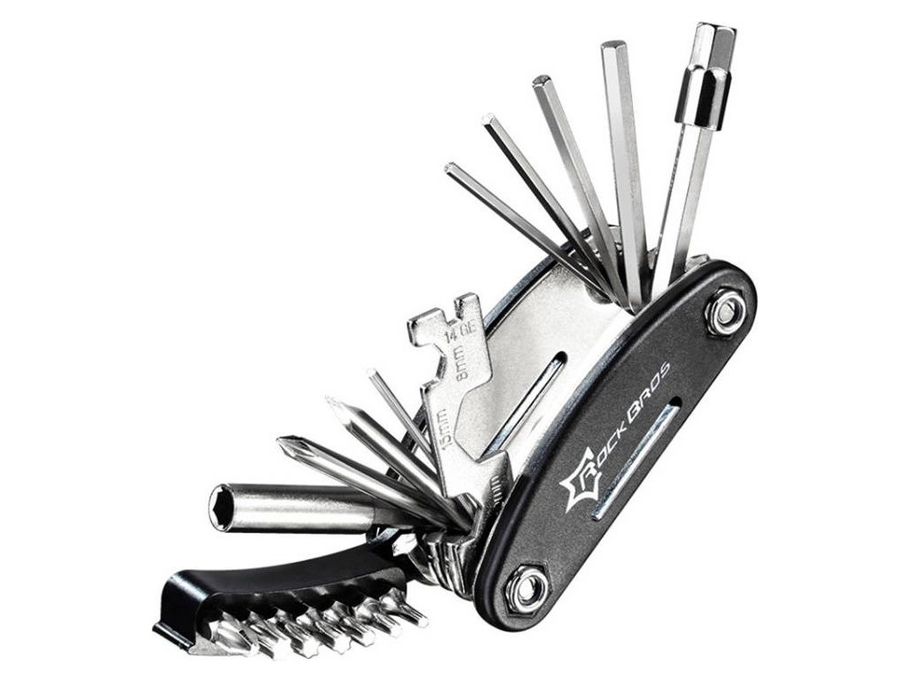 Už sa nemusíte báť, že vám nečakaná porucha pokazí výlet na bicykli a donúti vás ísť domov pešo. Multifunkčný vreckový opravársky nástroj Rockbros vám pomôže opraviť väčšinu drobných závad! Tento praktický multitool ponúka až 16 nástrojov v jednom – vrátane imbusových kľúčov, sady vreckových kľúčov, skrutkovačov a nástrčných hlavíc. Navyše je vyrobené z odolnej uhlíkovej ocele a má prenosný design.