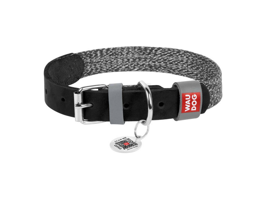 Obojok pre psa z prírodnej kože a recyklovaného materiálu s QR kódom Waudog veľ. L, šírka 25 mm (čierny).