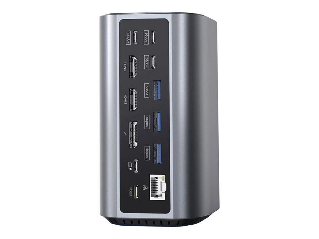 Dokovacia stanica Blitzwolf BW-TH15 je pokročilé riešenie pre tých, ktorí potrebujú maximálny počet portov na jednom mieste. Je vybavená až 17 rôznymi rozhraniami a umožňuje pripojiť viac zariadení naraz, čím poskytuje pohodlie a šetrí miesto na vašom stole. K dispozícii sú 2 porty HDMI, 1 DisplayPort, 4 porty USB-C, 3 porty USB 3.0, 1 port USB 3.1 a port USB-C 3.2 Gen2 pre hostiteľa, čo zaisťuje širokú kompatibilitu a rýchly prenos dát.