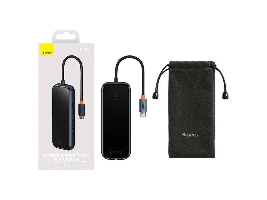 Dokovacia stanica 5v1 Baseus radu AcmeJoy USB-C na 2xUSB 3.0 + USB 2.0 + USB-C PD + RJ45 (tmavo šedý)