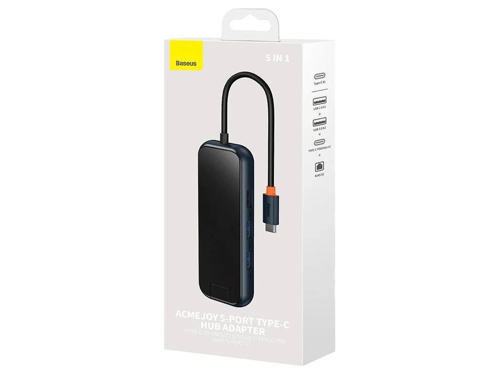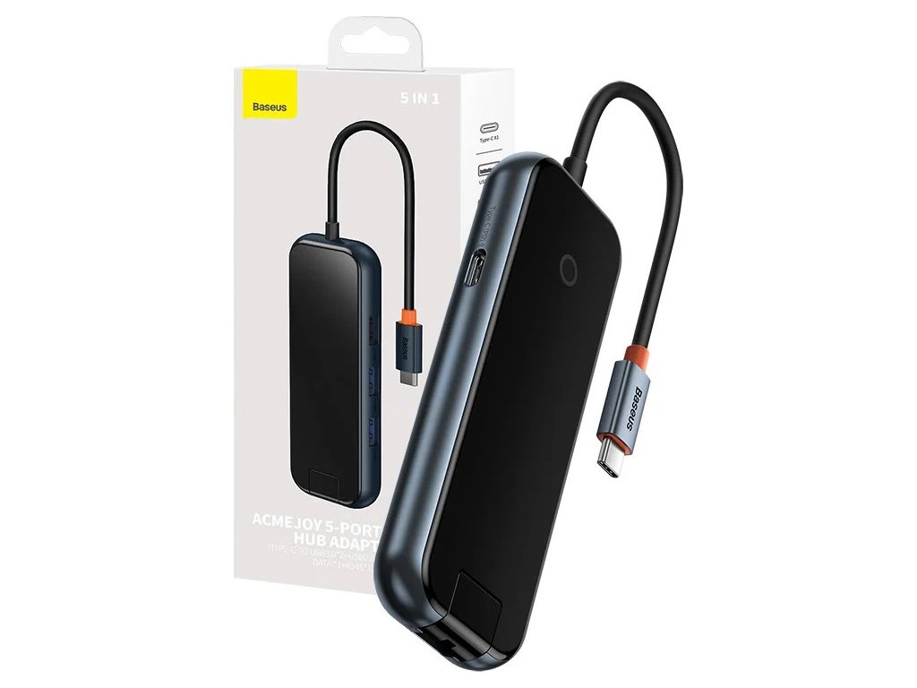 Nemá váš notebook dostatok portov? Teraz môžete ľahko rozšíriť jeho možnosti! Rozbočovač 5 v 1 Baseus AcmeJoy ponúka až 5 užitočných portov - 2x USB 3.0, USB 2.0, USB-C a RJ45. Umožňuje prenášať súbory rýchlosťou až 500 MB/sa podporuje rýchle nabíjanie PD 100W. Umožní vám aj bezproblémový prístup k internetu. Zariadenie tiež zaisťuje bezpečné používanie a vyniká širokou kompatibilitou.
