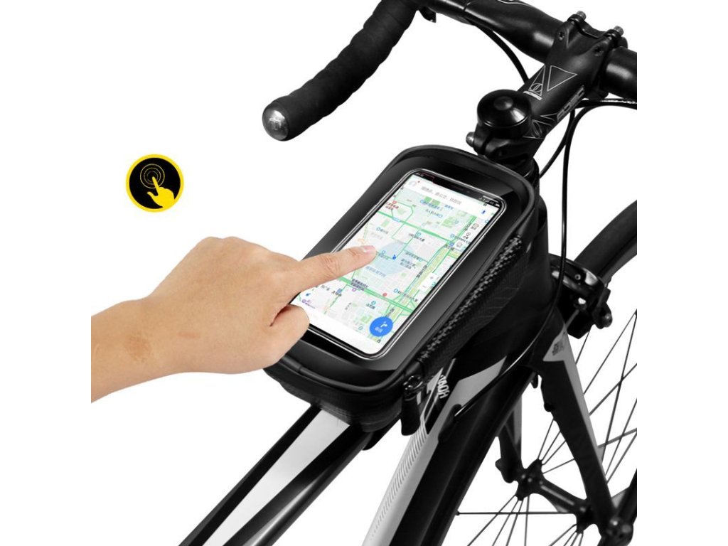 Taška je upevnená na ráme bicykla, takže je praktickou a bezpečnou priehradkou aj krytom pre váš smartphone.