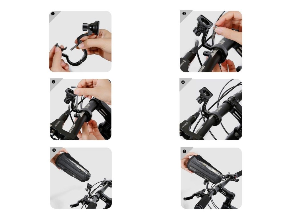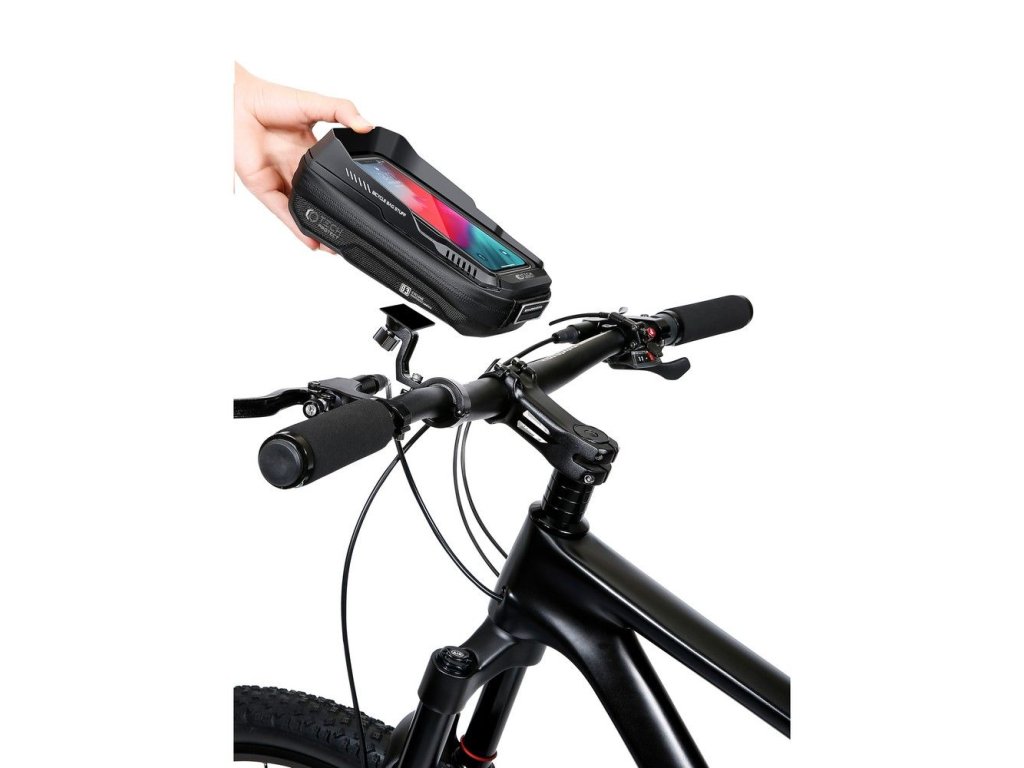 Taška na bicykel / držiak na bicykel Rockbros 029-1BK Jazdíte radi na bicykli? Vybavte sa praktickým držiakom na telefón, ktorý navyše funguje ako taška a umožňuje uložiť drobné predmety.