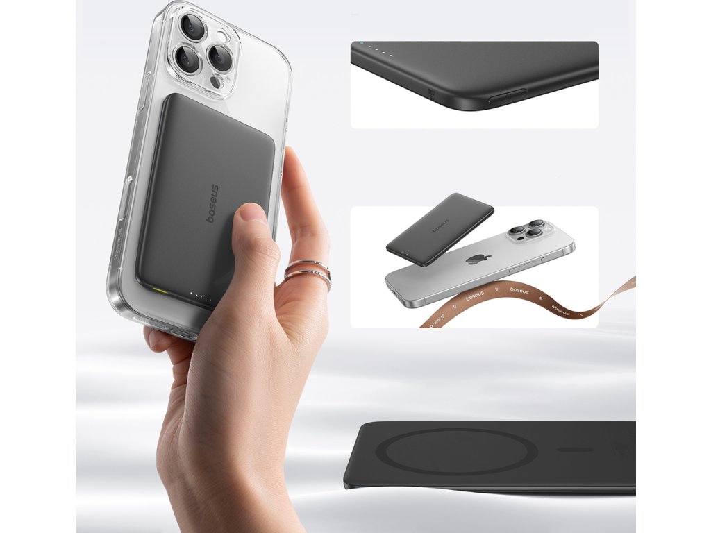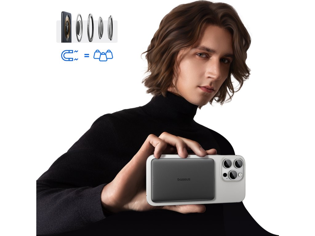 Joyroom JR-PBM12 22,5W magnetická bezdrôtová powerbanka s rukoväťou (čierna) Nabíjajte svoje vybavenie pohodlne a bezpečne.