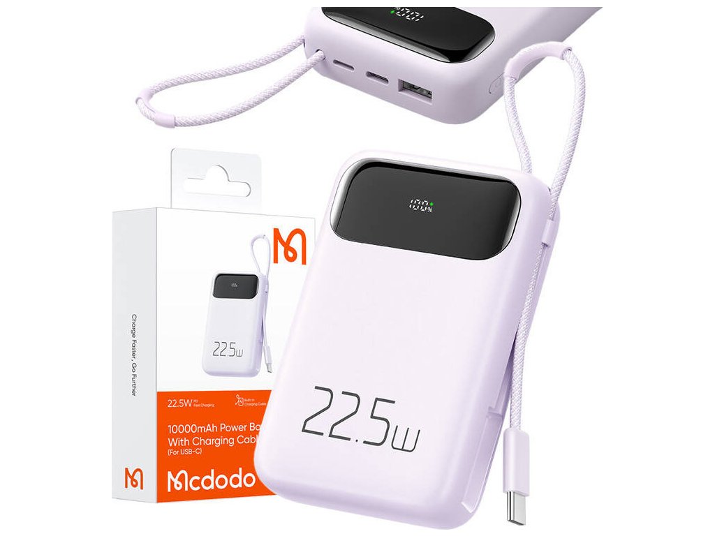Mcdodo Power Bank MC-3245 10000mAh, 22,5W, s USB-C káblom (fialová)