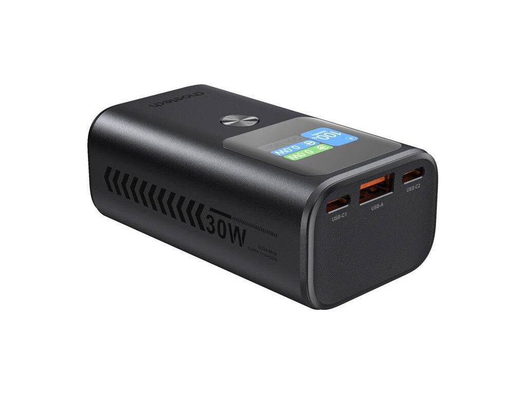 Powerbanka Choetech B701 podporuje technológiu 30W Power Delivery a má kapacitu 10 000 mAh. Vďaka 2 portom USB-C a jednému portu USB-A môžete nabíjať 3 zariadenia súčasne, napríklad iPhone, MacBook alebo smartfón so systémom Android. Integrovaný TFT displej umožňuje sledovať výkon batérie v reálnom čase a ďalšie funkcie zvyšujú pohodlie.