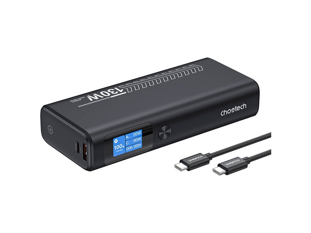 Powerbanka Choetech B702 s kapacitou 20 000 mAh podporuje technológiu 100W Power Delivery a ponúka 3 porty, takže je ideálna na cesty, do práce aj na každodenné použitie. Vstavaný TFT displej poskytuje plnú kontrolu nad stavom batérie a aktuálnym energetickým zaťažením.