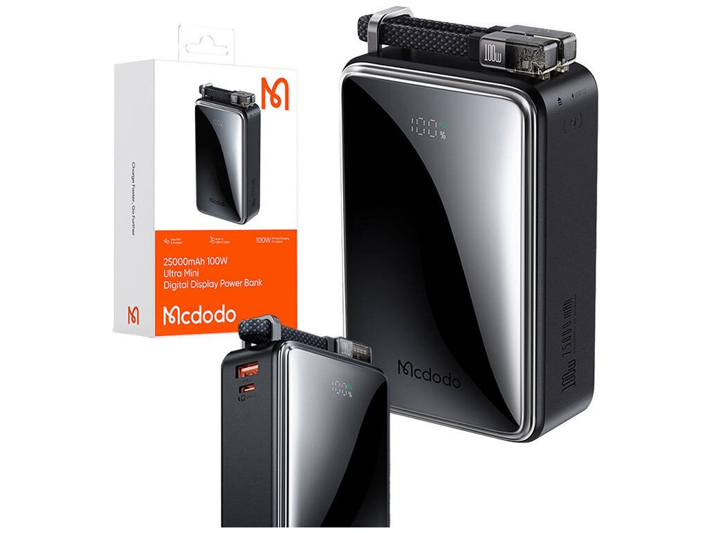 Power banka Mcdodo MC-0561 Digital Dis 25000mAh (pre notebooky, telefóny a pod.), 100W + USB-C kábel (čierna)