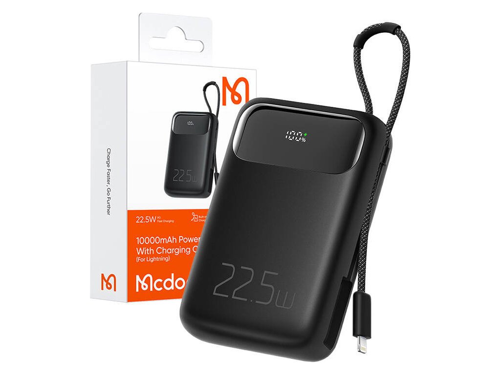 Power banka Mcdodo MC-3253 10000mAh, 22,5 W, Lightning kábel (čierna)
