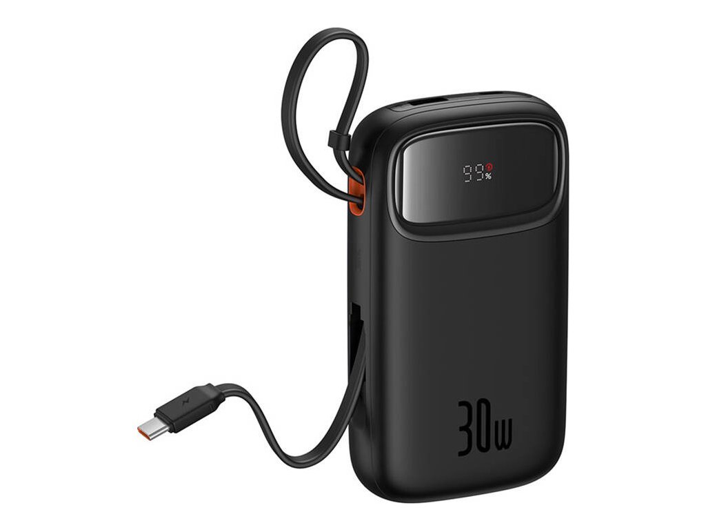 Powerbanka Baseus Qpow Pro s káblom USB-C (čierna) Vyberte si objemnú powerbanku od spoločnosti Baseus a nabíjajte svoje zariadenia rýchlo a bezpečne.