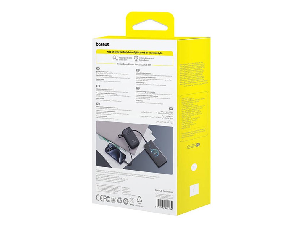 Powerbanka je vybavená dvoma USB-C portami, jedným USB-A portom a má vstavaný USB-C kábel. Ide o riešenie, ktoré umožňuje nabíjať niekoľko zariadení súčasne. Či už potrebujete nabiť svoj smartphone, tablet, slúchadlá alebo iné gadgety, Baseus QPow 2 poskytuje všestrannosť, ktorú potrebujete.