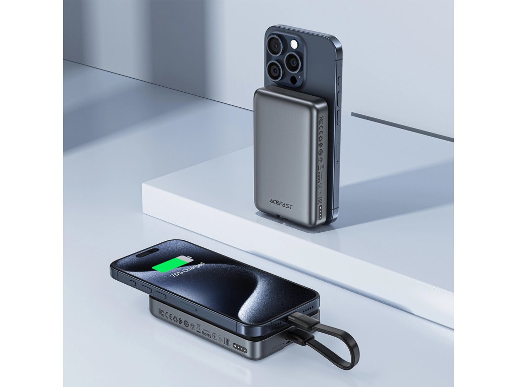 Potrebujete spoľahlivú a všestrannú powerbanku? Acefast M10 je perfektným riešením – kombinuje funkcie magnetického a káblového nabíjania a poskytuje výnimočné pohodlie a flexibilitu. S kapacitou 10 000 mAh si môžete užívať dlhú výdrž batérie pre svoje zariadenia. Powerbanka Acefast M10 nielenže vyzerá elegantne vďaka UV vrstvám, ale poskytuje aj ochranu pred poškriabaním a nečistotami. Vďaka certifikátom CE, FCC, ROHS a ECA spĺňa medzinárodné normy leteckej dopravy, takže si ju môžete vziať na palubu lietadla.