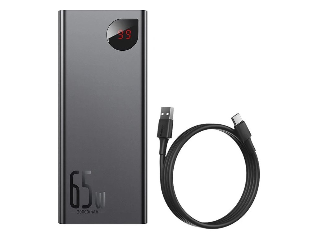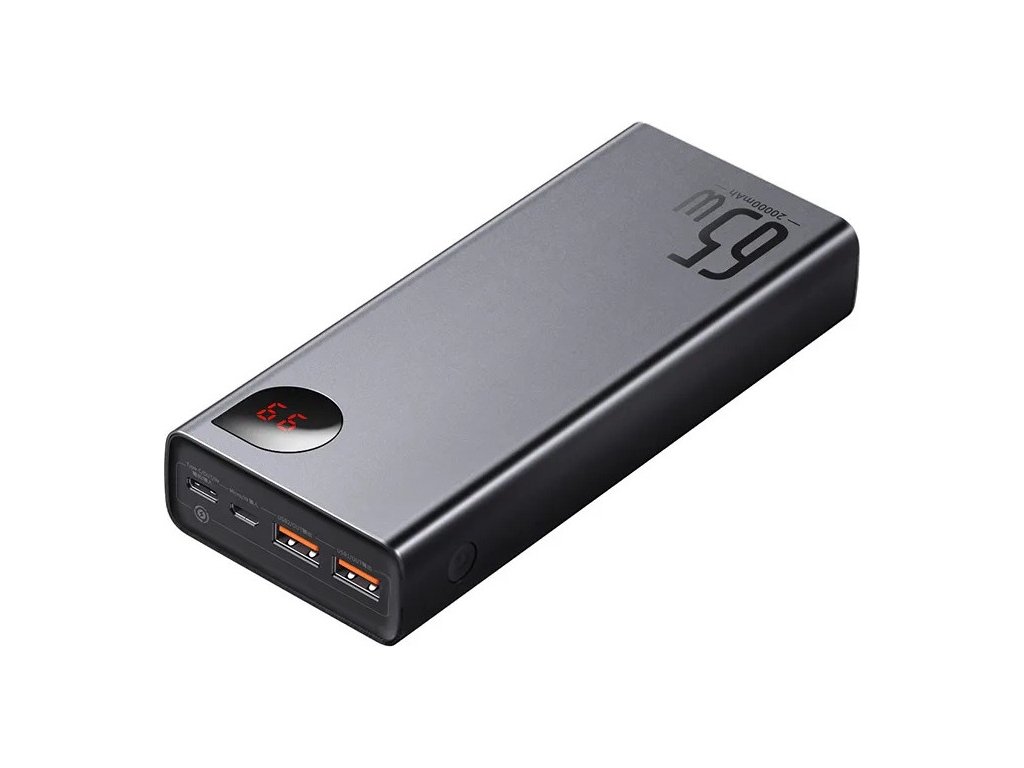 Vďaka powerbanke od spoločnosti Baseus rýchlo nabijete svoj notebook alebo telefón. Zariadenie podporuje štandard rýchleho nabíjania 65W Power Delivery, takže batéria vášho MacBooku bude plne nabitá iba za 2 hodiny. Powerbanka je vybavená dvoma výstupnými portami USB a výstupnými portami USB-C a micro USB/vstupnými portami.