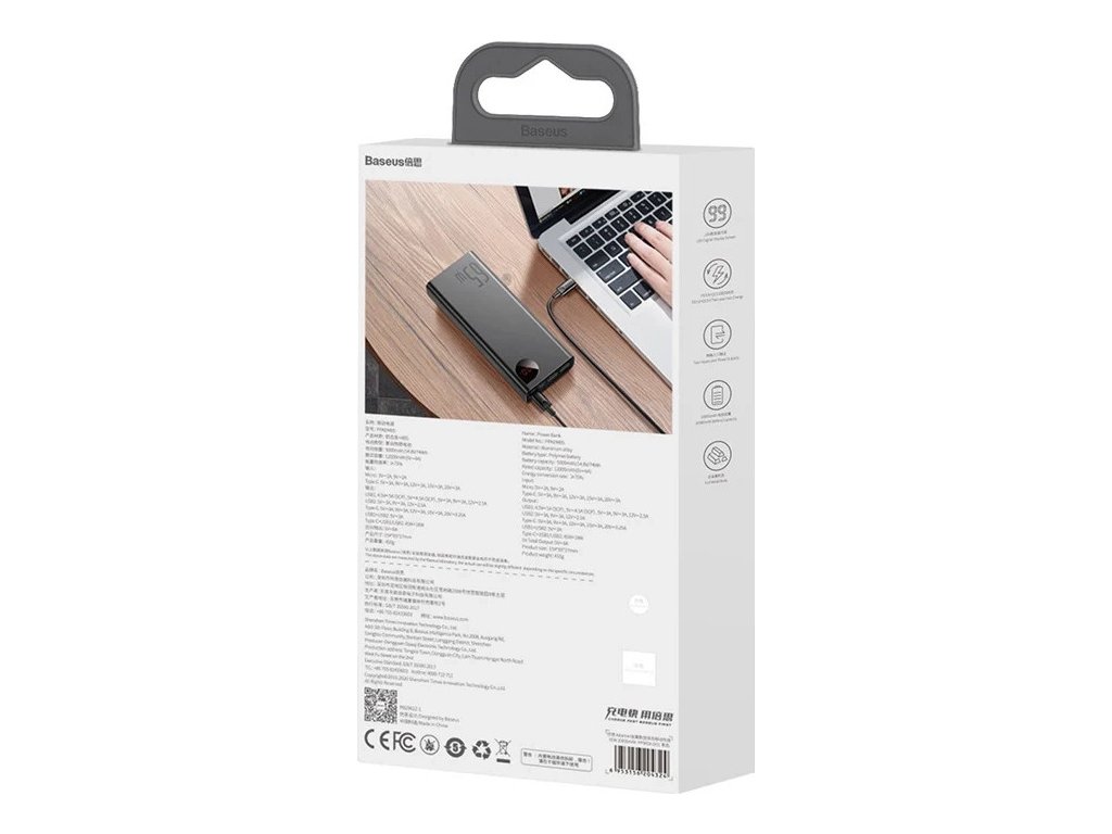 Powerbanka značky Baseus podporuje technológiu rýchleho nabíjania a je kompatibilná so zariadeniami, ako je napríklad Huawei alebo Apple, a umožňuje nabiť 50% batérie iba za polhodinu. Nabíjanie powerbanky PPIMDA-D01 je v porovnaní s inými modelmi 5-krát rýchlejšie, trvá iba 2 hodiny. Vďaka 20000mAh batérii stačí PPIMDA-D01 nabiť iba raz a môžete s ňou obnoviť energiu svojich zariadení až 7krát (pre Apple 8).