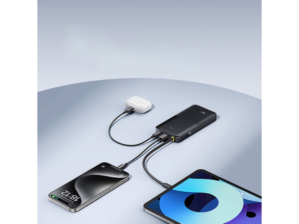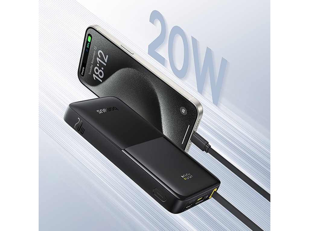 Baseus Bipow 2 10000mAh je kompaktná, vysoko výkonná powerbanka s výkonom 20 W. Vďaka vstavanému káblu USB-C môžete nabíjať svoje zariadenia kdekoľvek bez potreby ďalších káblov. Obojsmerný port USB-C poskytuje rýchle nabíjanie Power Delivery, zatiaľ čo port USB-A umožňuje súčasné nabíjanie druhého zariadenia. Digitálny LED displej zobrazuje presnú úroveň nabitia a ľahký a tenký dizajn sa perfektne zmestí do vrecka alebo tašky. Je to praktické riešenie, ktoré kombinuje mobilitu s bezpečnosťou a moderným dizajnom.