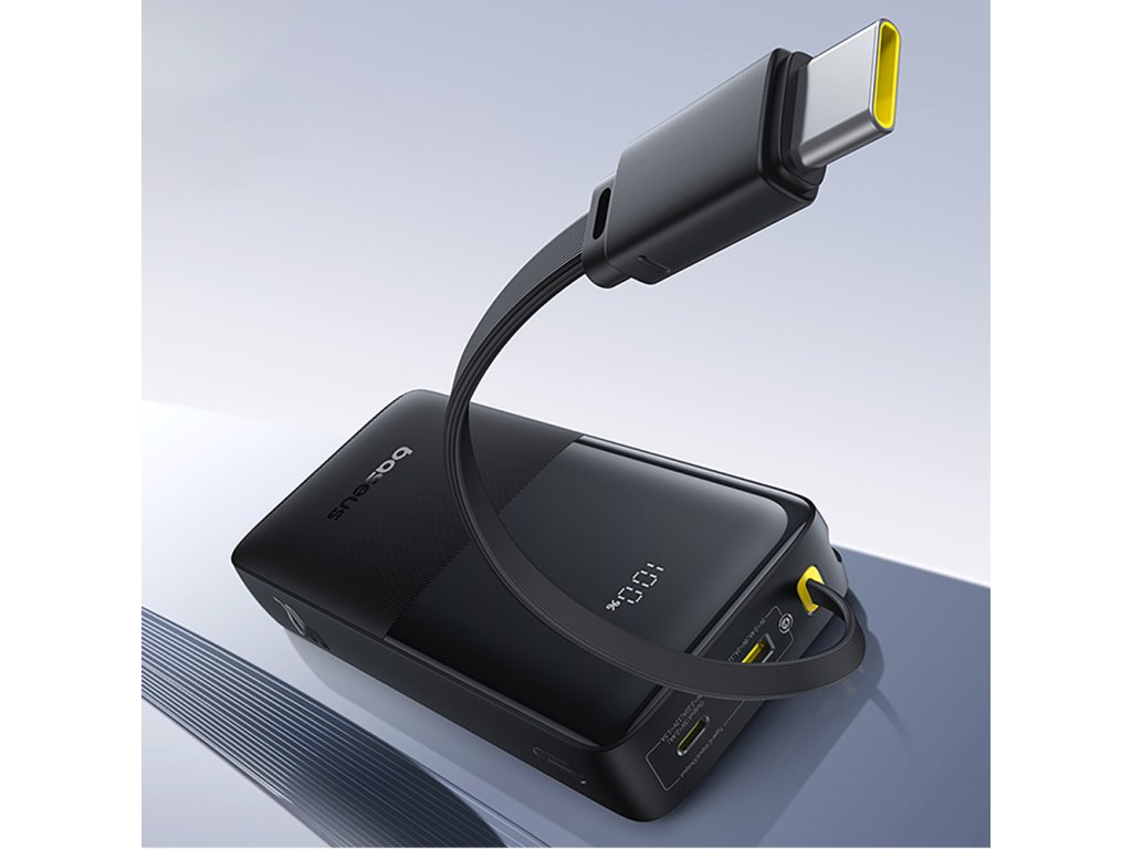 Baseus Bipow 2 má integrovaný kábel USB-C, vďaka čomu nie je potrebné nosiť ďalšie káble. Jednoducho zapojte zariadenie a okamžite sa začne nabíjať – pohodlne a bez toho, aby ste si museli zapĺňať tašku.