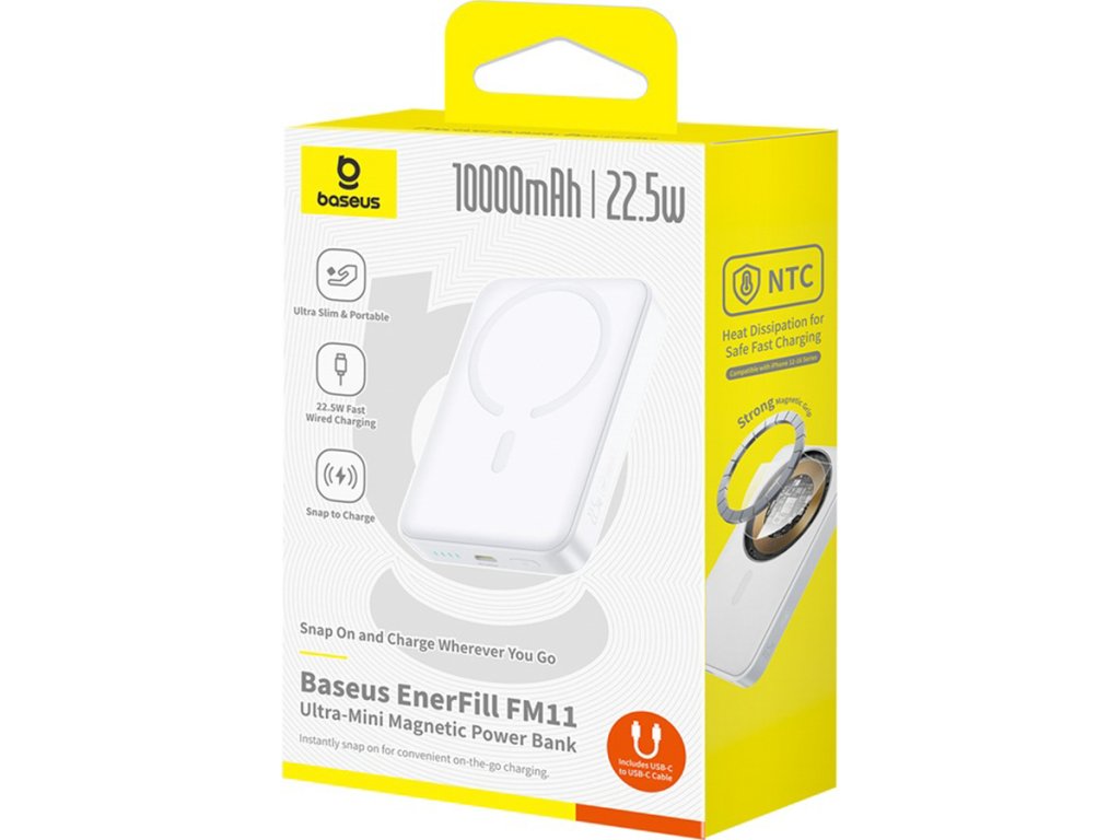 Powerbanka Baseus EnerFill FM11 Ultra-Mini 10000 mAh 22,5 W kompatibilná s MagSafe s káblom Baseus Simple USB-C 20V/3A 30 cm - biela