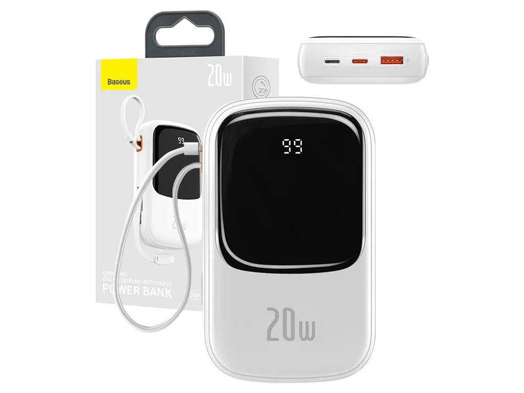 Powerbanka Baseus Qpow PRO s káblom Lightning, portom USB-C a USB 20000mAh, 20W (biela)