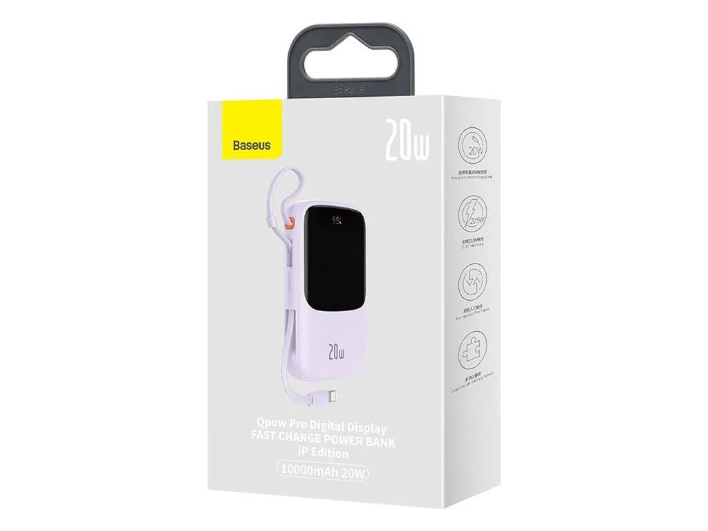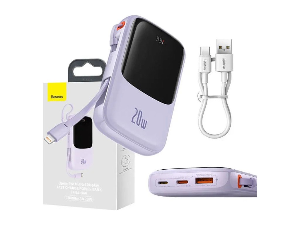 Powerbanka Baseus Qpow Pro s káblom Lightning, USB-C, USB, 10000 mAh, 20 W (fialová)
