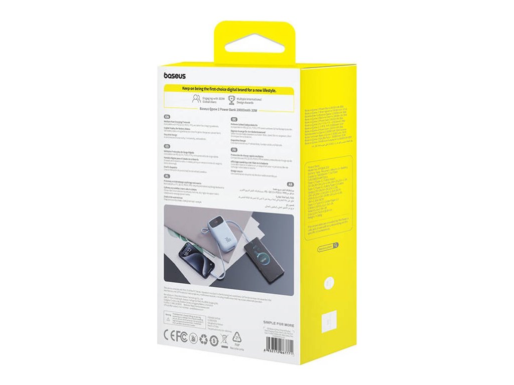 S powerbankou Baseus QPow 2 si môžete byť istí, že vaše zariadenia budú nabité, nech ste kdekoľvek. S kapacitou 20 000 mAh je táto powerbanka perfektným riešením pre tých, ktorí potrebujú spoľahlivú energiu v každej situácii. Ponúka výkon až 30 W a vďaka niekoľkým USB portom môžete bez problémov nabíjať niekoľko zariadení súčasne.