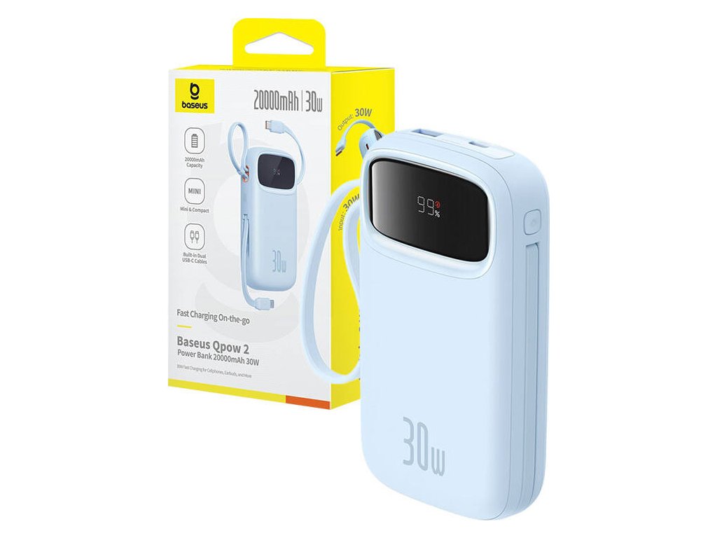 Powerbanka je vybavená dvoma USB-C portami, jedným USB-A portom a má vstavaný USB-C kábel. Ide o riešenie, ktoré umožňuje nabíjať niekoľko zariadení súčasne. Či už potrebujete nabiť svoj smartphone, tablet, slúchadlá alebo iné gadgety, Baseus QPow 2 poskytuje všestrannosť, ktorú potrebujete.