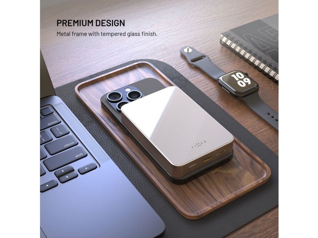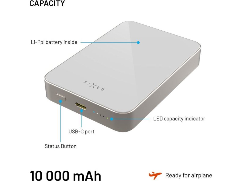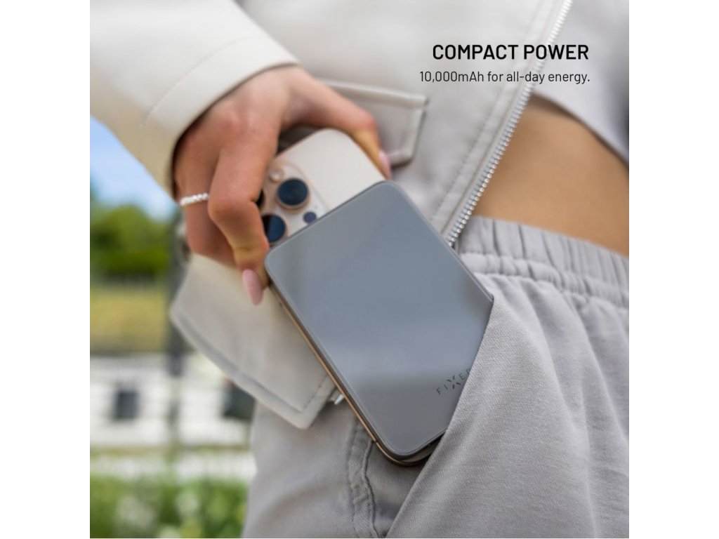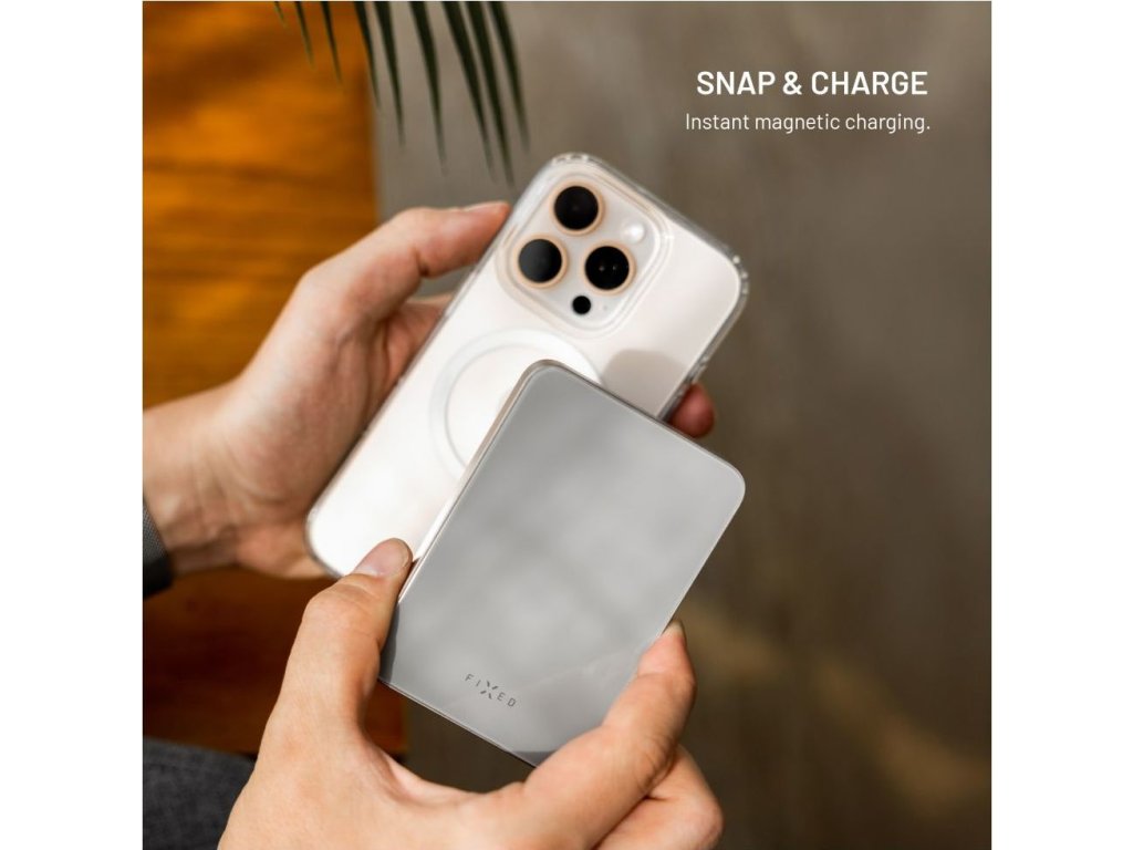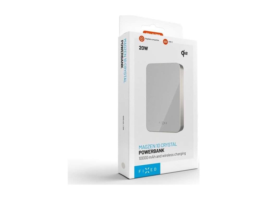 Powerbanka FIXED MagZen 10 Crystal s bezdrátovým nabíjením se standardem Qi2 a podporou MagSafe, 10 000 mAh, titanová