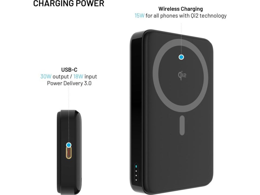 - powerbanka s bezdrôtovým nabíjaním a podporou Qi2