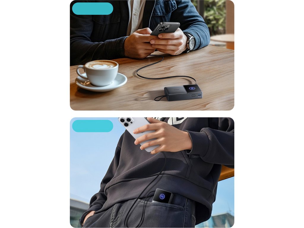 - Kompaktný dizajn: o 35 % menší ako podobné powerbanky, ľahký a pohodlný na nosenie vo vrecku alebo taške.
