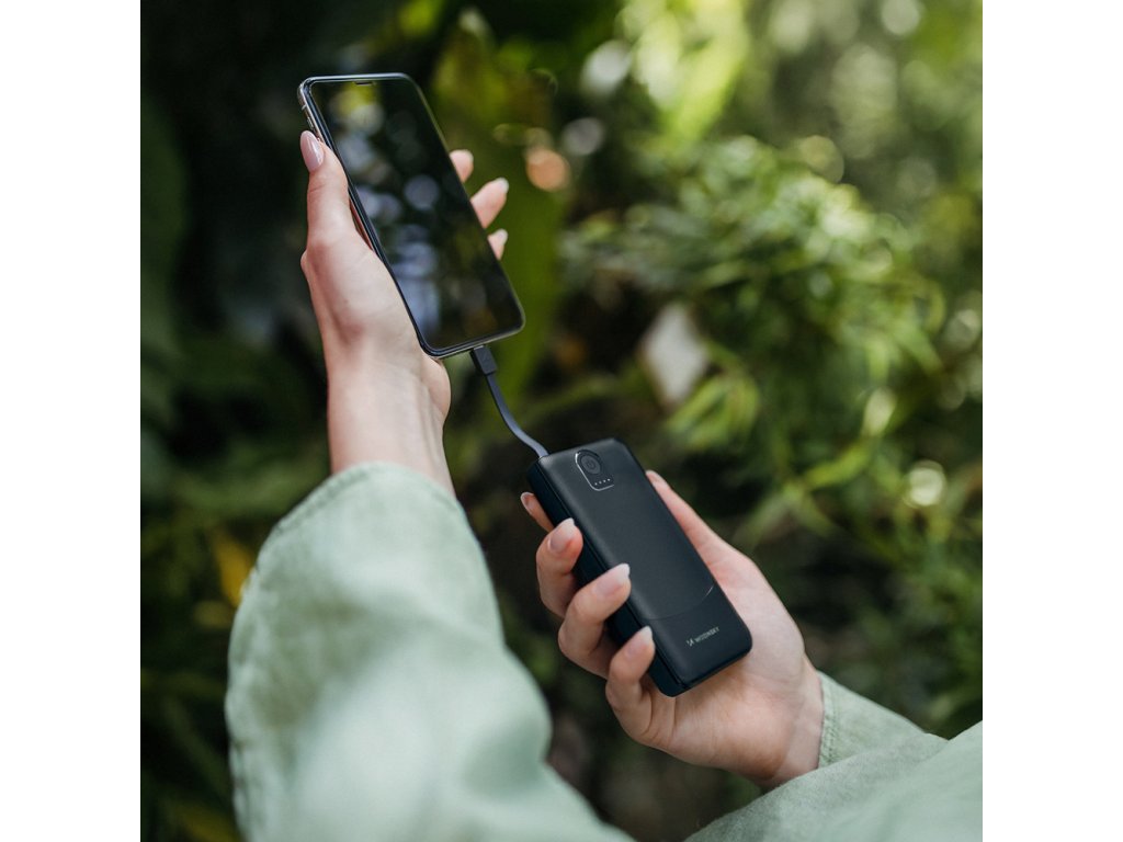 - Kompaktný dizajn: Malé rozmery a ľahká konštrukcia umožňujú, aby sa powerbanka zmestila do vrecka, tašky alebo batohu.