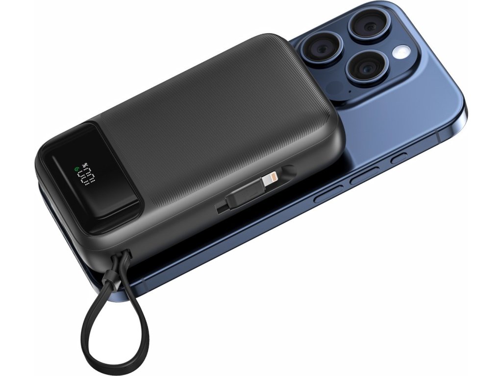 Keďže má powerbanka integrované káble s koncovkami USB-C a Lightning už naďalej nebudete musieť riešiť akékoľvek káble. Powerbanku pomocou USB-C koncovky aj nabijete.