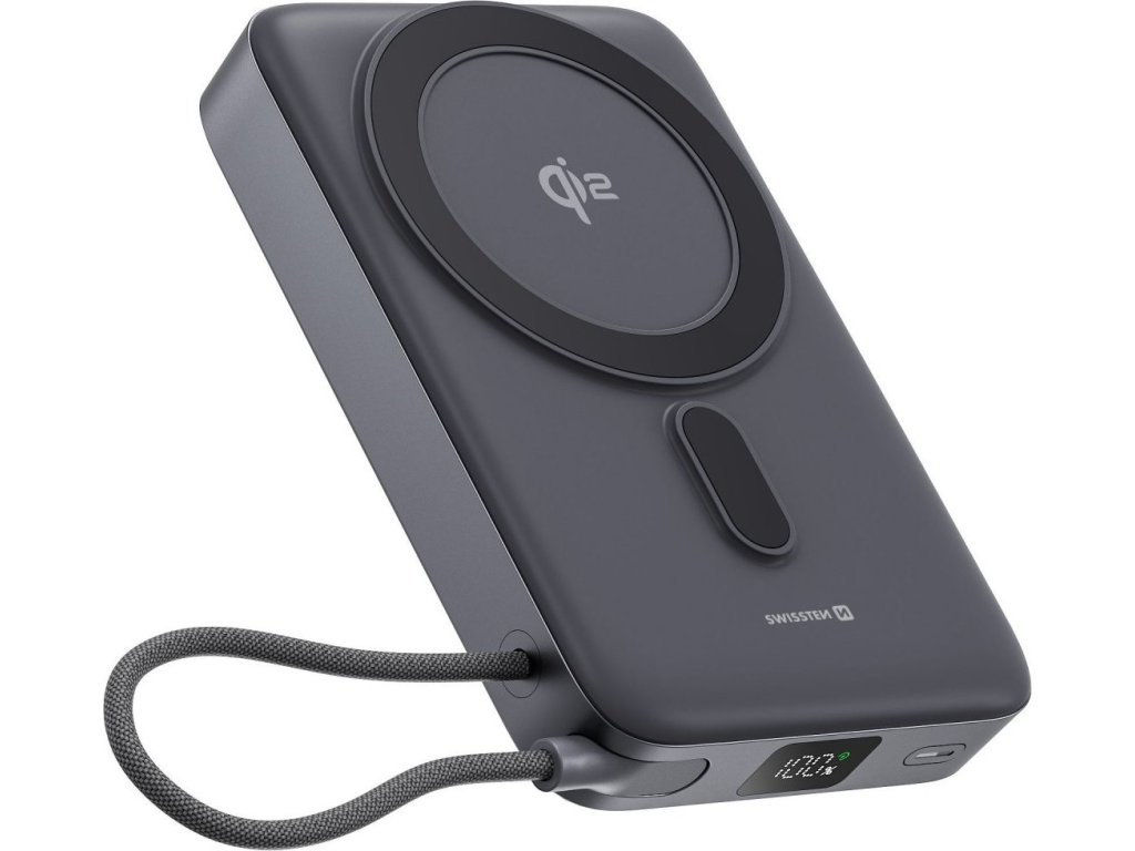 SWISSTEN POWER BANK MagSafe Qi2 10000 mAh 15W S INTEGROVANÝM KÁBLOM USB-C ČIERNA