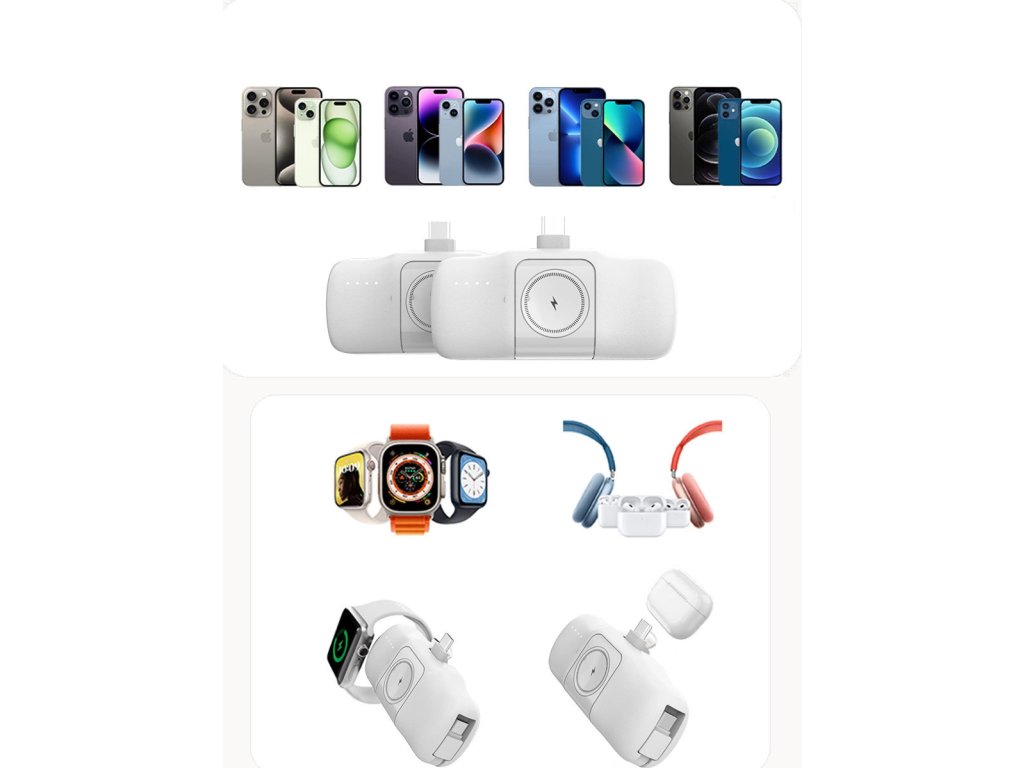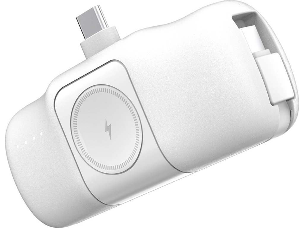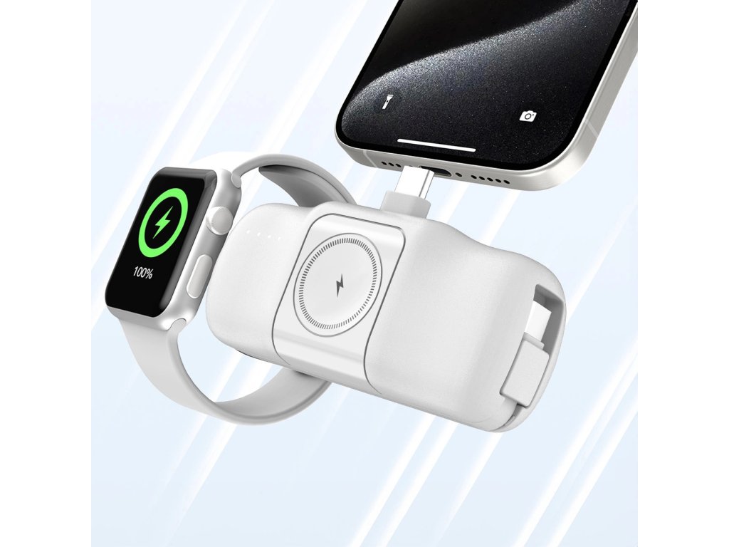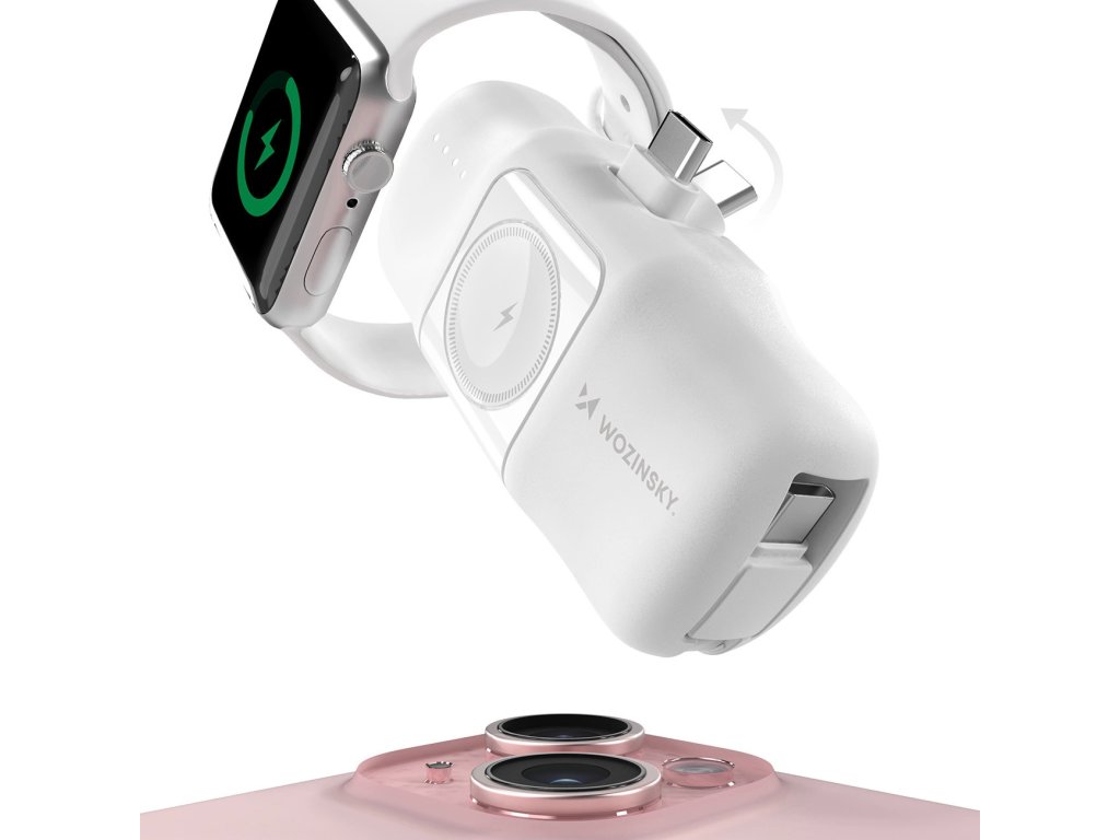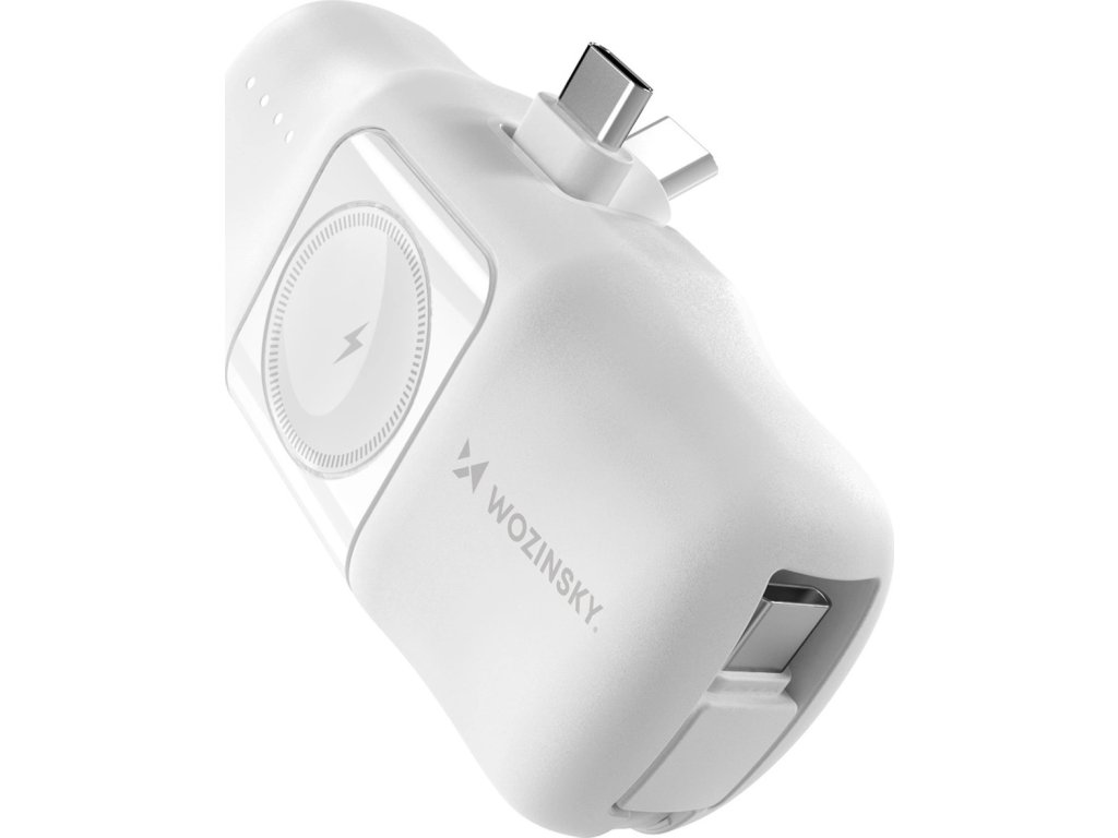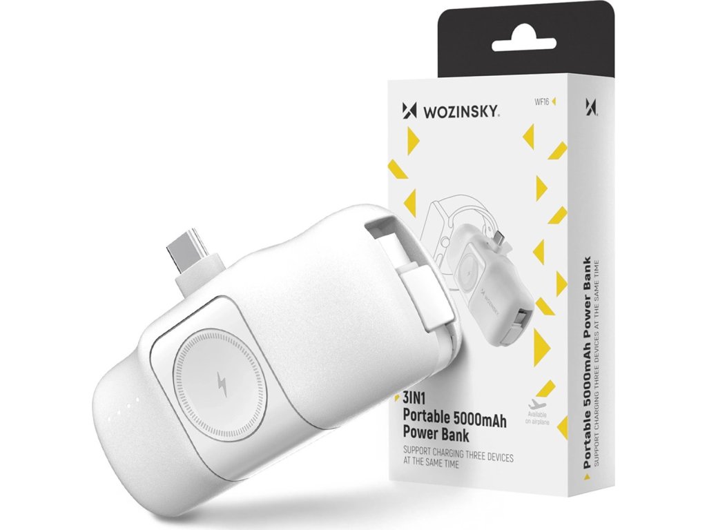 Wozinsky WF16-YCS 5000mAh 15W USB-C mini powerbanka so vstavaným káblom USB-C a nabíjačkou pre Apple Watch - biela