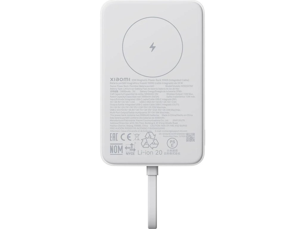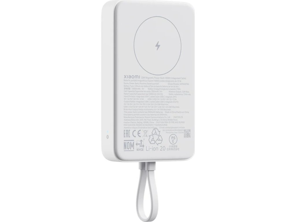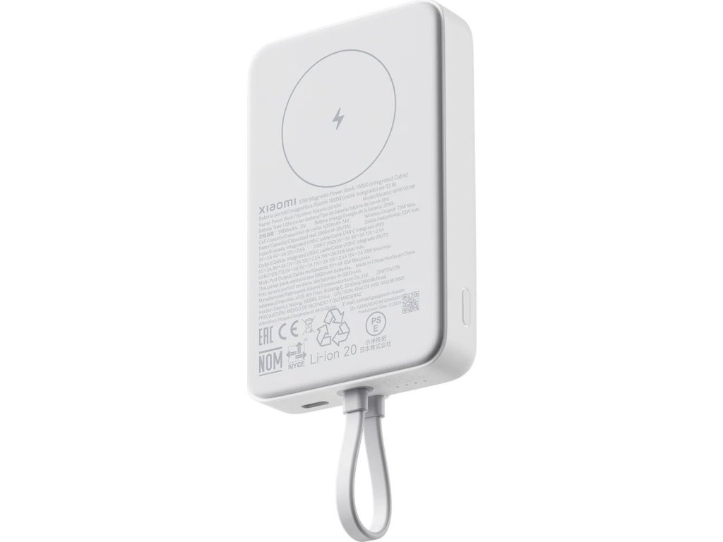 Magnetická sila na cestách Xiaomi Magnetická Powerbanka 33W 10000mAh je dokonalým spoločníkom pre každého, kto potrebuje spoľahlivú energiu kedykoľvek a kdekoľvek. Vďaka precíznemu magnetickému uchyteniu ponúka pohodlné bezdrôtové nabíjanie bez zbytočných káblov. Stačí priložiť a nabíjanie beží samo – rýchlo, stabilne a bezpečne. Magnetické uchytenie je pevné a stabilné, takže telefón drží bezpečne aj počas používania. Výkon, ktorý nesklame Powerbanka je pripravená na všetky situácie. Umožňuje 7,5W magnetické bezdrôtové nabíjanie aj 33W rýchle káblové nabíjanie, ktoré vaše zariadenie dobije v rekordnom čase. Navyše podporuje 30W rýchle samonabíjanie, takže powerbanku doplníte na 100% už za približne 140 minút. Zvládne tiež nabíjať až tri zariadenia súčasne – ideálne pri cestovaní, práci aj každodennom používaní. Vysoká kapacita a spoľahlivosť Vnútri sa ukrývajú dve 5000mAh batérie s celkovou kapacitou 10 000mAh. Táto rezerva energie vám bez problémov zaistí dostatok energie pre vaše zariadenie, takže sa na túto powerbanku môžete spoľahnúť aj počas dlhého dňa mimo domova. Powerbanka si navyše zachováva stabilný výkon aj pri súbežnom nabíjaní viacerých zariadení. Vďaka kvalitným článkom a chytrej správe napájania vám poskytne istotu, že energiu budeš mať vždy po ruke. Štýl, ktorý si zamilujete Prémiové spracovanie s matným povrchom príjemným na dotyk a mäkkou protišmykovou silikónovou plochou pre bezdrôtové nabíjanie zaisťuje pohodlné používanie. Plochý dizajn a kvalitné materiály robia z powerbanky nielen praktický, ale aj štýlový doplnok. Je ľahká, skladná a pohodlne sa drží aj pri pripojení k mobilu. Vďaka štyrom jasným LED diódam máš vždy prehľad o aktuálnom stave batérie. Ideálny spoločník na cesty, do práce aj do vrecka. Bezpečie na prvom mieste Inteligentná regulácia teploty nonstop sleduje podmienky a automaticky upravuje výkon, aby chránila vaše zariadenie aj powerbanku. Celkom deväť vrstiev bezpečnostnej ochrany sa stará o prevenciu prehriatia, prepätia, prebitia aj skratu. Kľúčové vlastnosti Kapacita: 10 000mAh Maximálny káblový výstup: 33W (USB-C / integrovaný USB-C kábel) Magnetické bezdrôtové nabíjanie: 7,5W Rýchle samonabíjanie: 30W (cca 140 min) Nabíjanie až 3 zariadenia súčasne Rozmery: 109 × 6 Vstupy: USB-C integrovaný kábel – 5V/3A, 9V/3A, 12V/2,5A USB-C – 5V/3A, 9V/3A, 12V/2,5A Výstupy: Kombinovaný -5V/3A (15 W MAX) USB-C (OUT1/OUT2) – až 33W