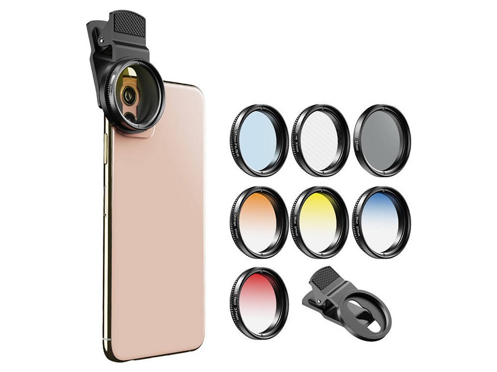 APEXEL APL-37UV-7G 37mm Externé / prídavné objektívy a filtre na mobilný telefón - sada (ND, CPL, Star, farebné filtre)