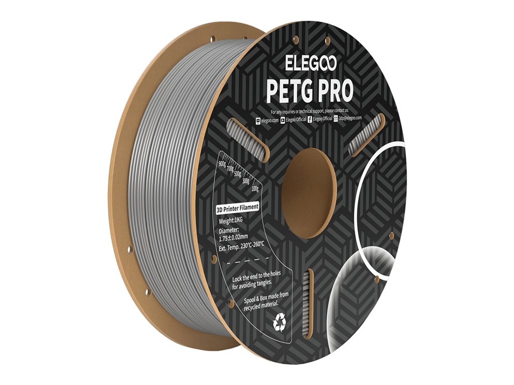 Filament ELEGOO PETG Pro je vynikajúcou voľbou pre tých, ktorí hľadajú materiál s vysokou mechanickou a tepelnou odolnosťou, ktorý sa zároveň ľahko tlačí. Poskytuje výnimočnú trvanlivosť, nízku náchylnosť k deformácii a vynikajúcu priľnavosť fólie, takže je ideálna na vytváranie technických súčastí, použiteľných prototypov a dielov vystavených náročnému používaniu.